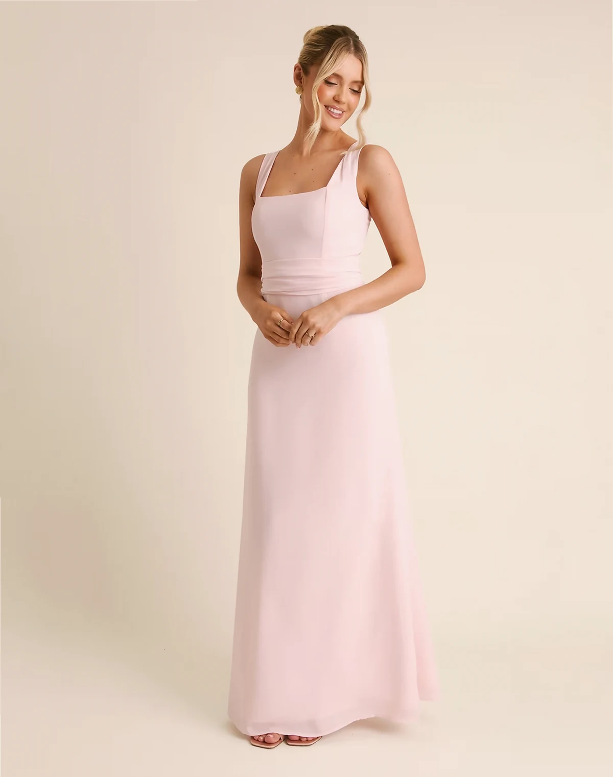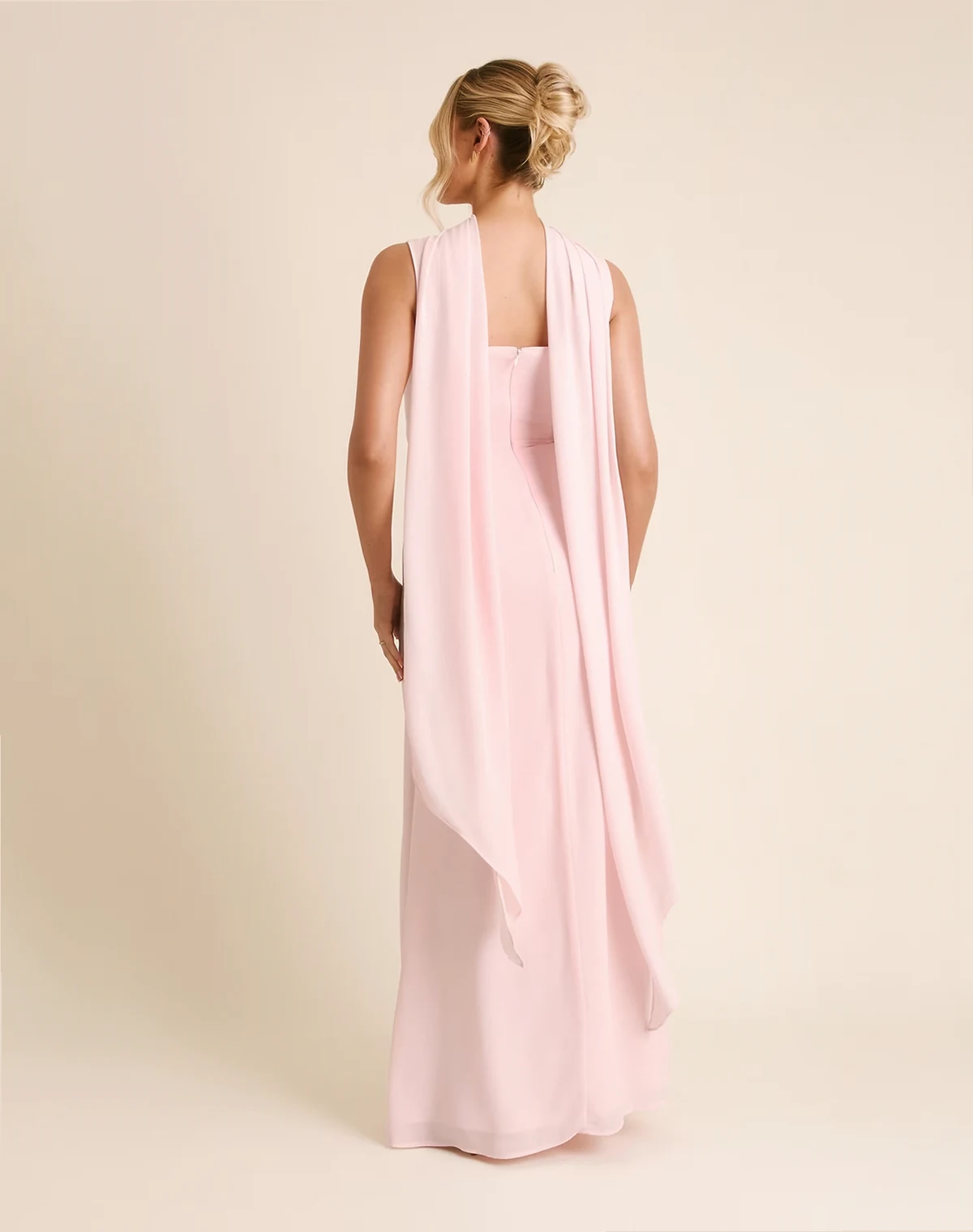 – Bridesmaid – Maxikleid aus Crepe in Hellrosa mit eckigem Ausschnitt und Schal am Ausschnitt