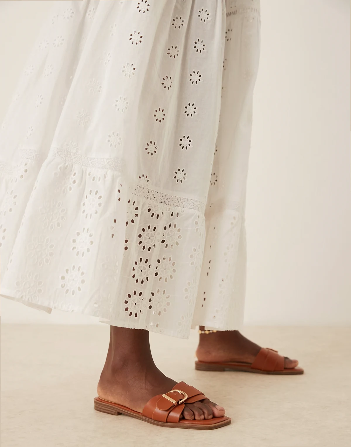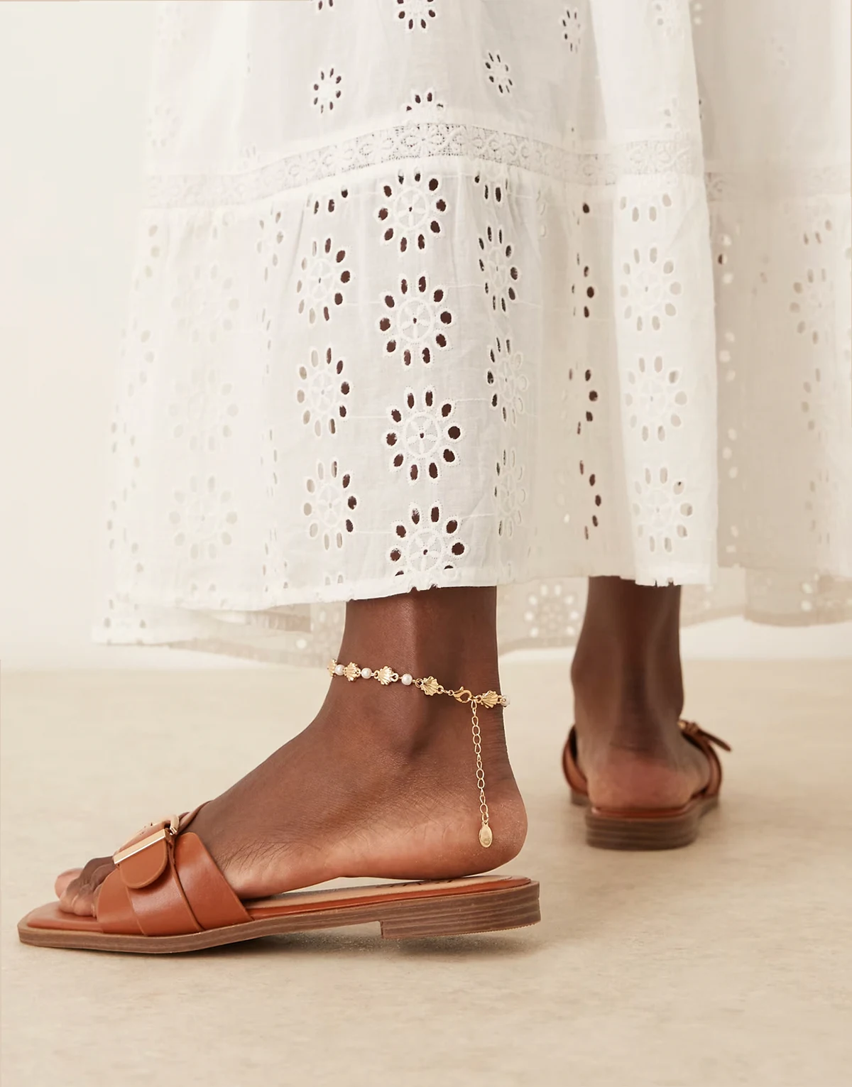– Nikola – Flache Sandalen in Hellbraun mit Schnallendetail