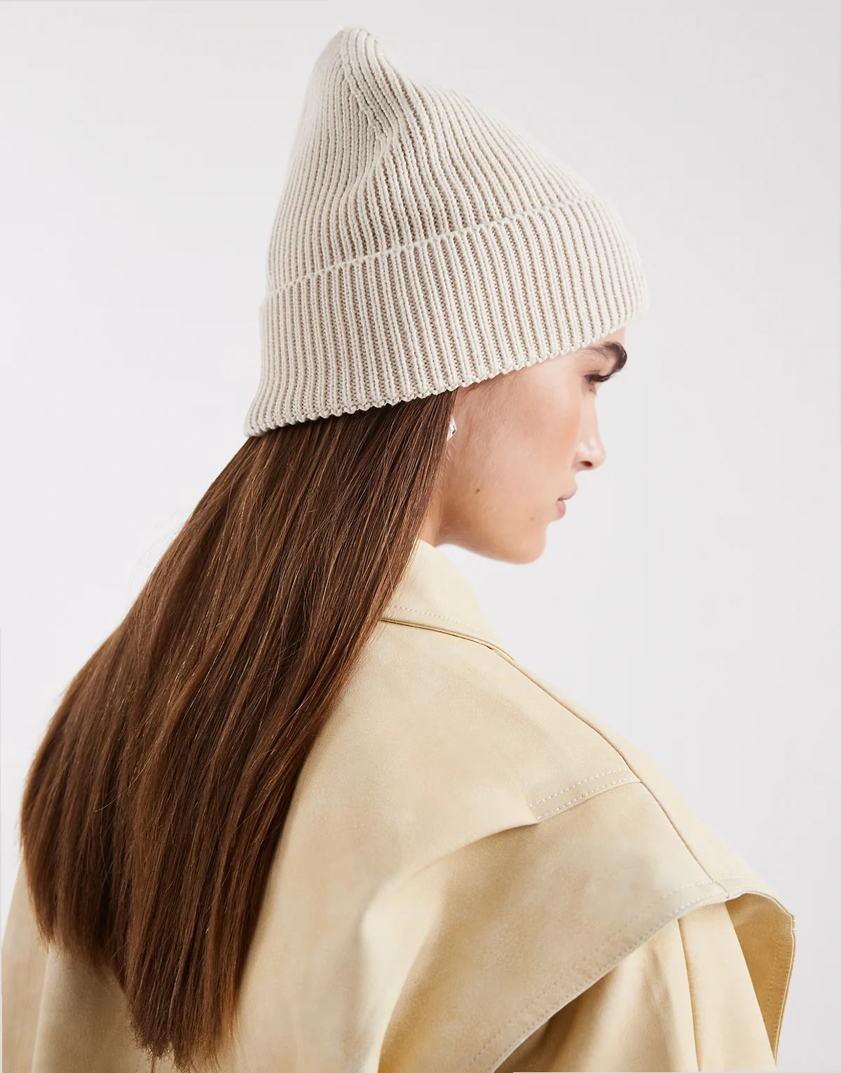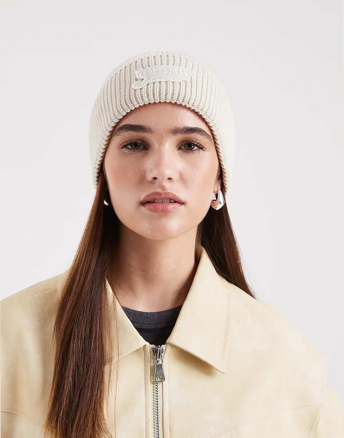 – Strickmütze in Ecru mit gesticktem Schriftzug-Logo
