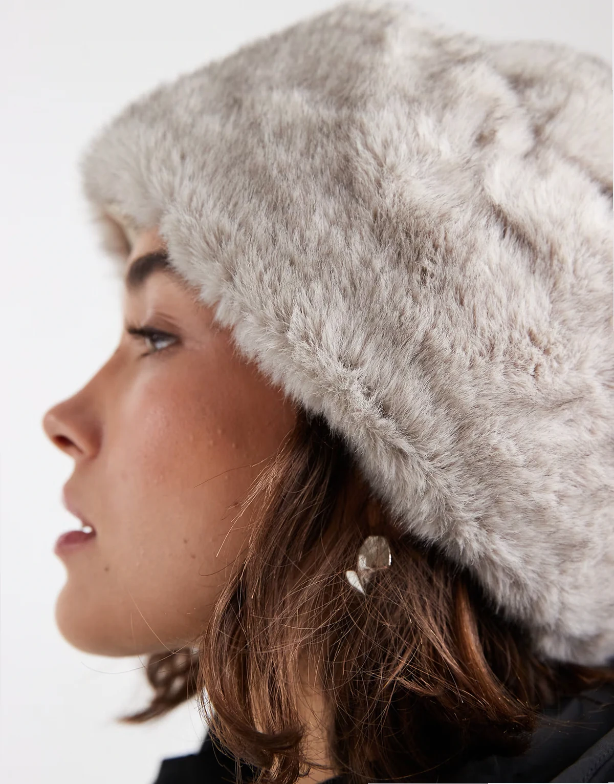 – Flauschiger Anglerhut aus Kunstpelz in Beige