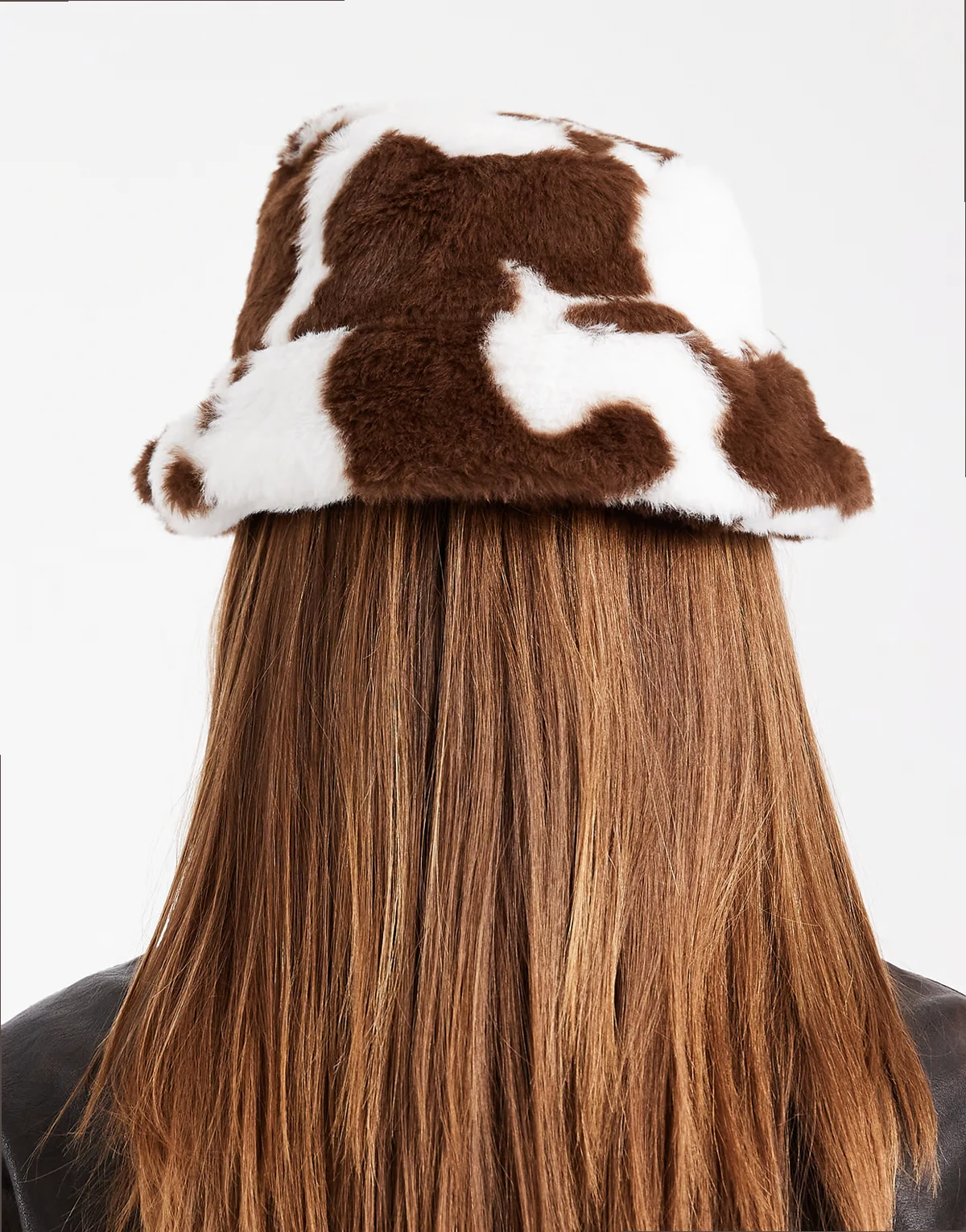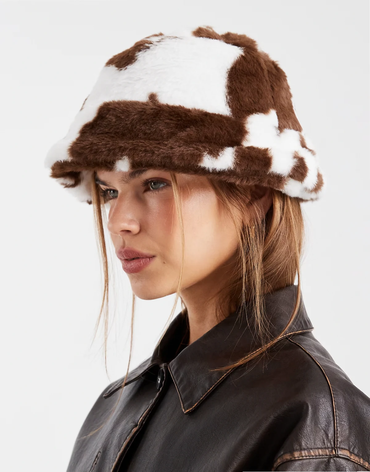 – Anglerhut aus Kunstpelz in Weiß mit Kuhfellmuster
