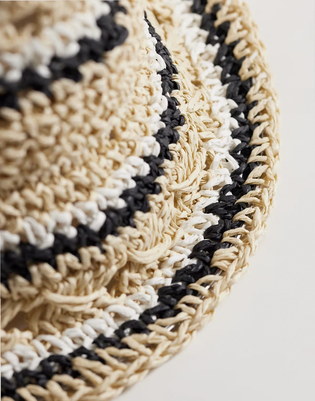 – Verstaubarer Anglerhut aus Stroh mit Streifen und offener Webstruktur