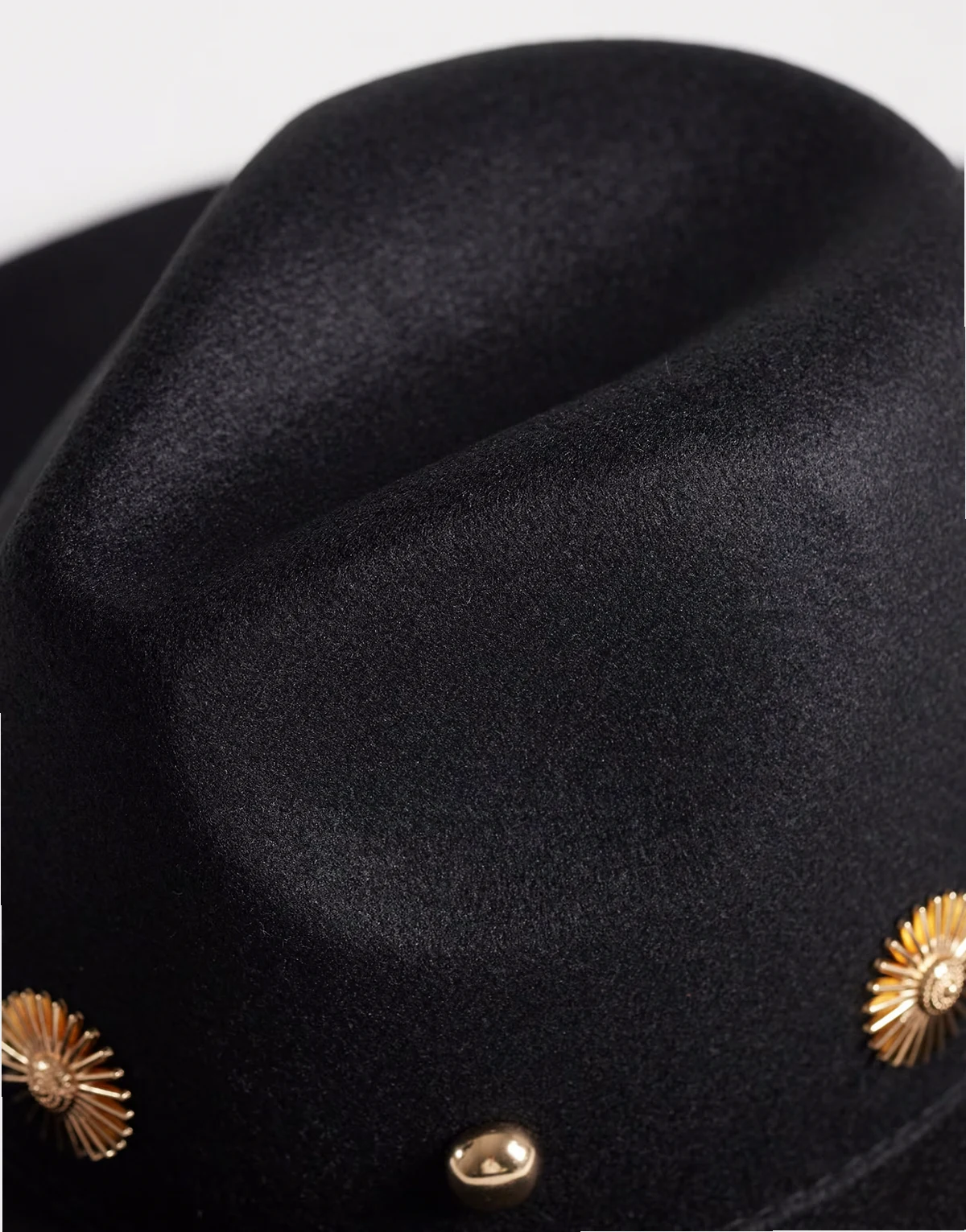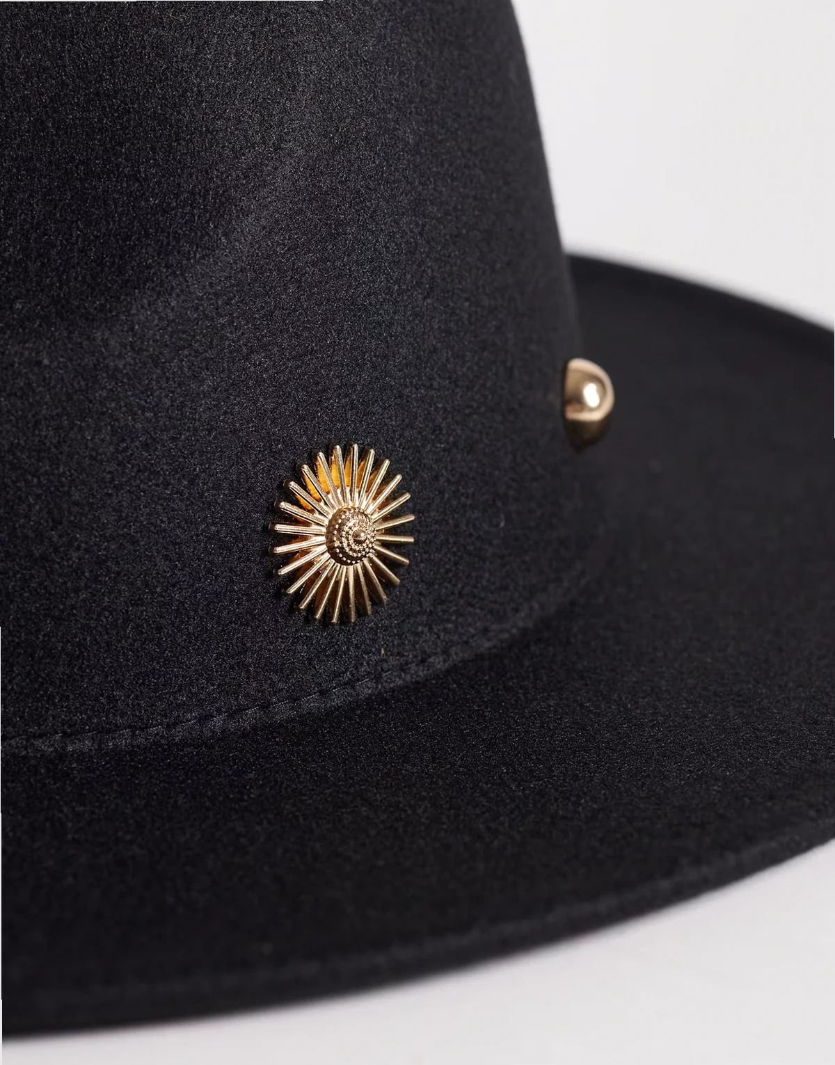 – Fedora-Hut in Schwarz mit goldfarbenen Nieten