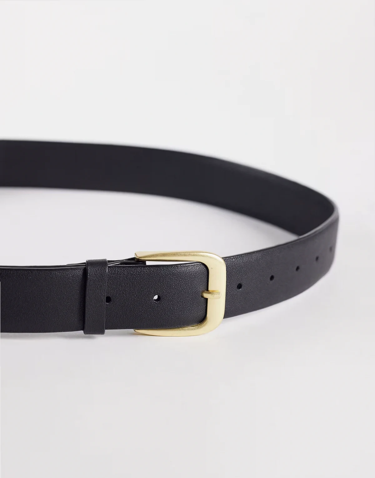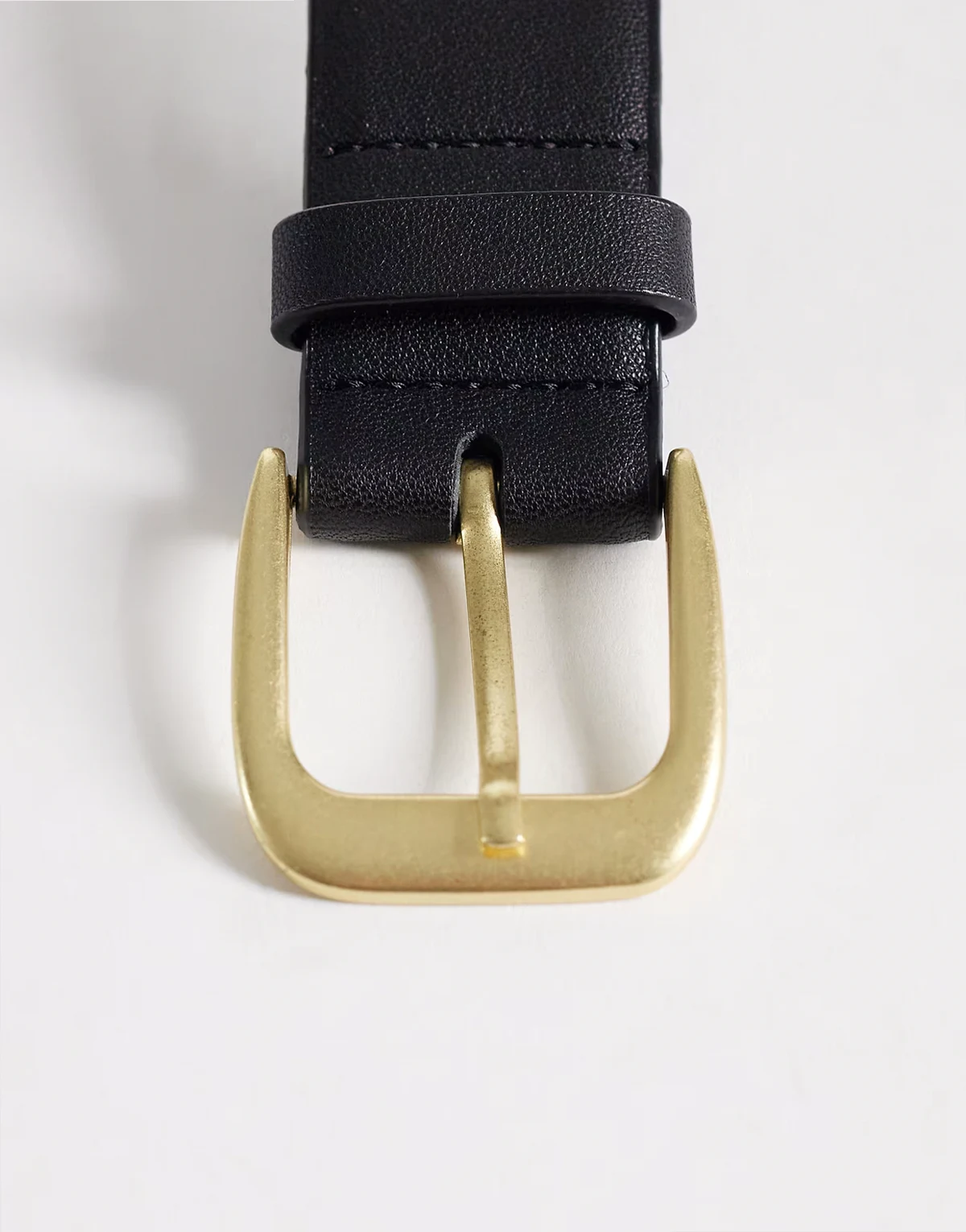 – Hüft- und Taillengürtel in Schwarz mit Schnalle in Altgoldoptik
