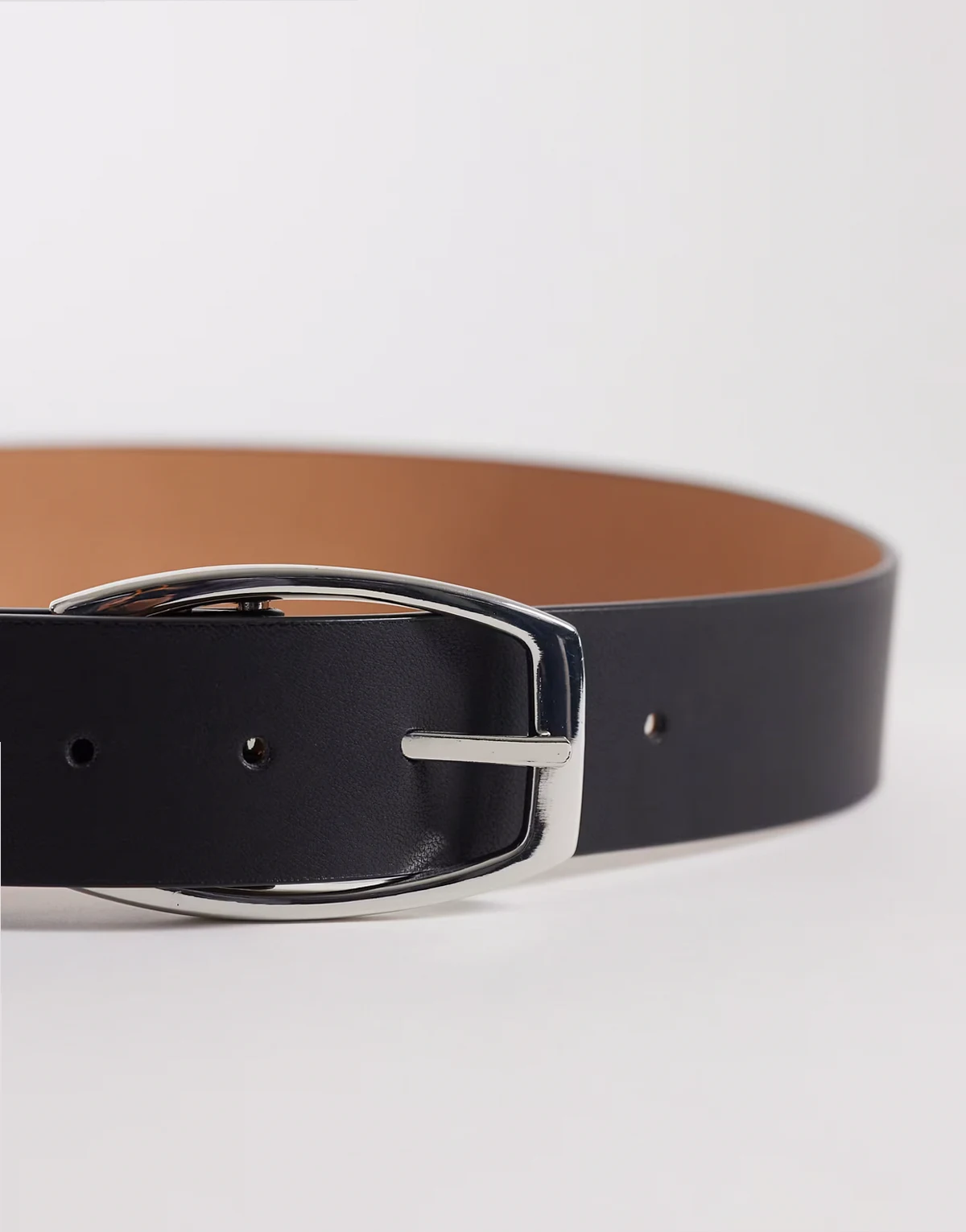 – Taillen- und Hüftgürtel in Schwarz mit eckiger, halbmondförmiger Schnalle