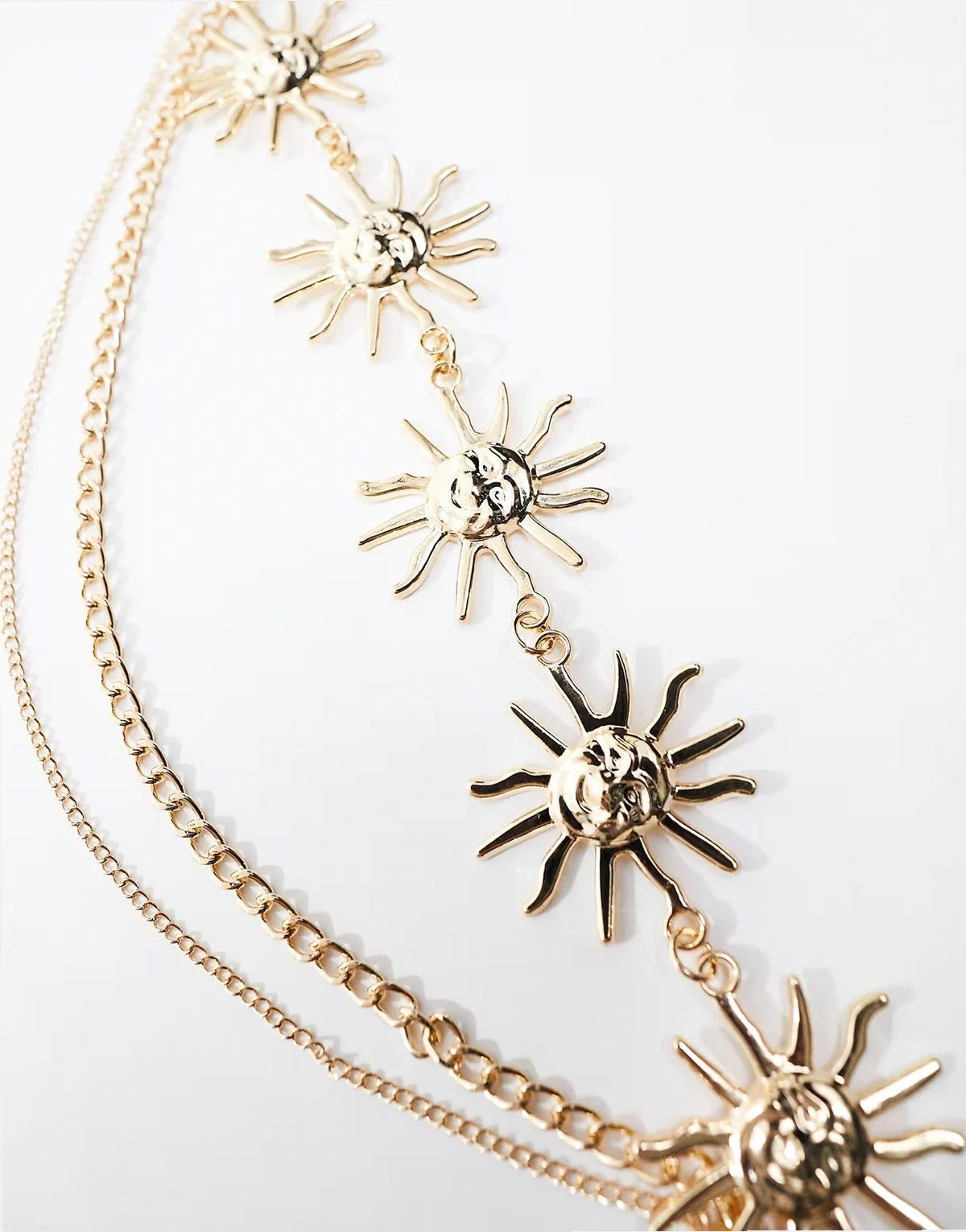 – Mehrlagiger Metallgürtel in Goldoptik mit Himmelskörper-Design