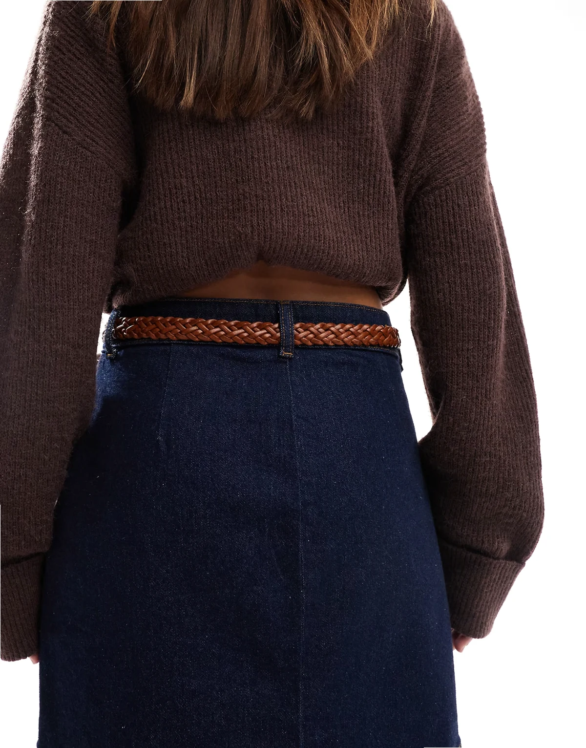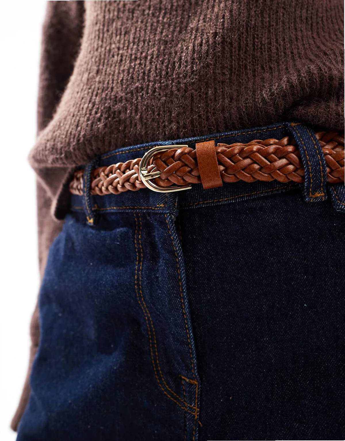 – Geflochtener Gürtel aus Kunstleder in Cognac