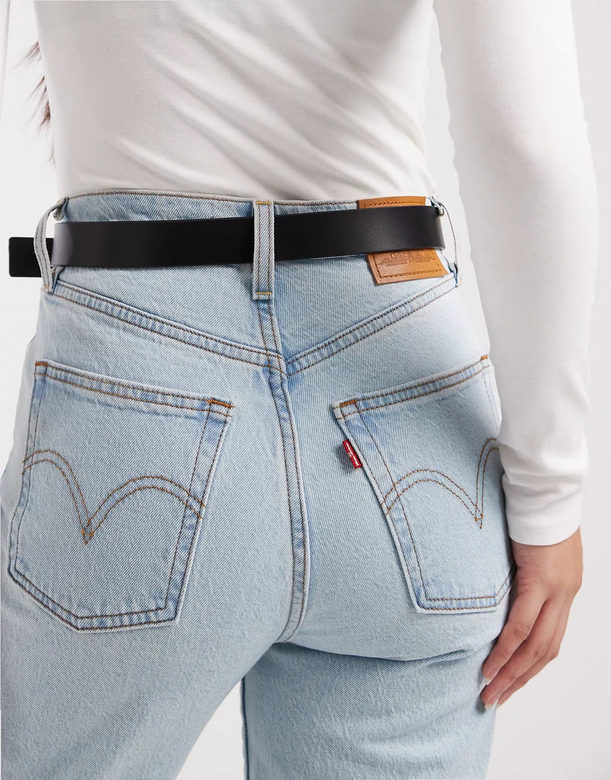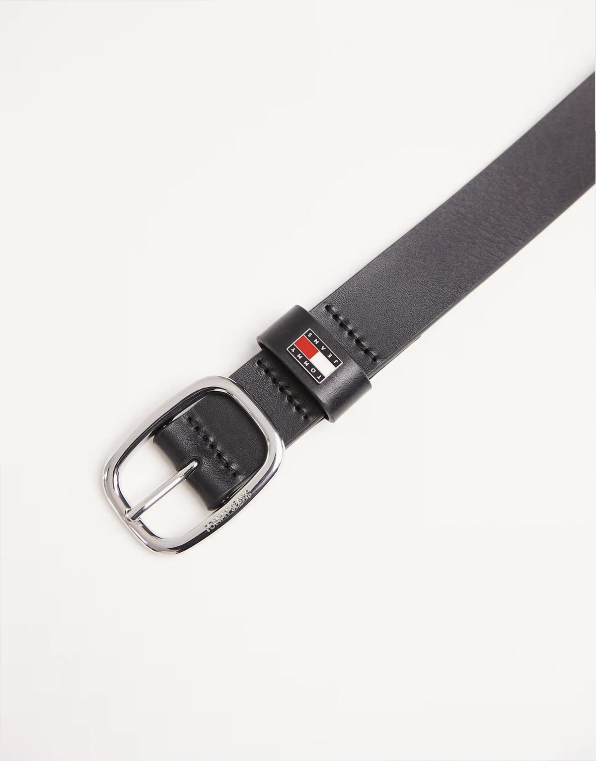 – Gürtel in Schwarz mit ovaler, silberfarbener Schnalle