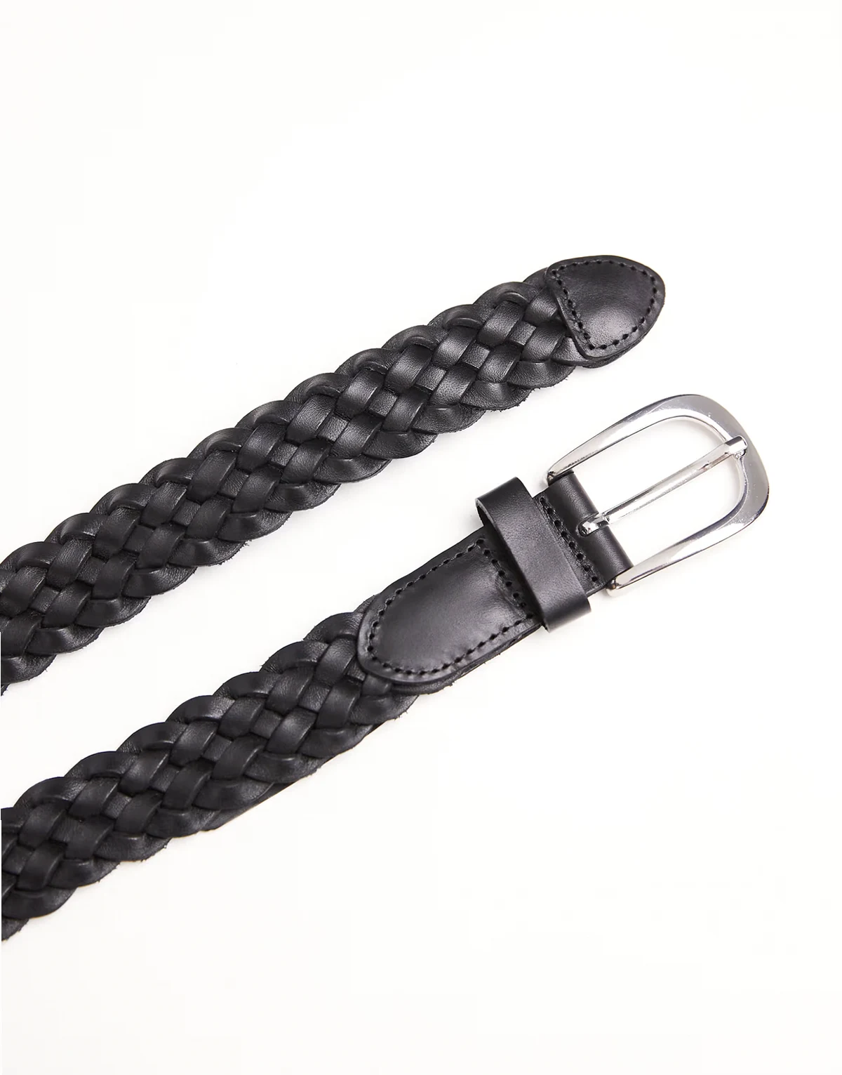 – Flechtgürtel aus Leder in Schwarz mit silberfarbener Schnalle