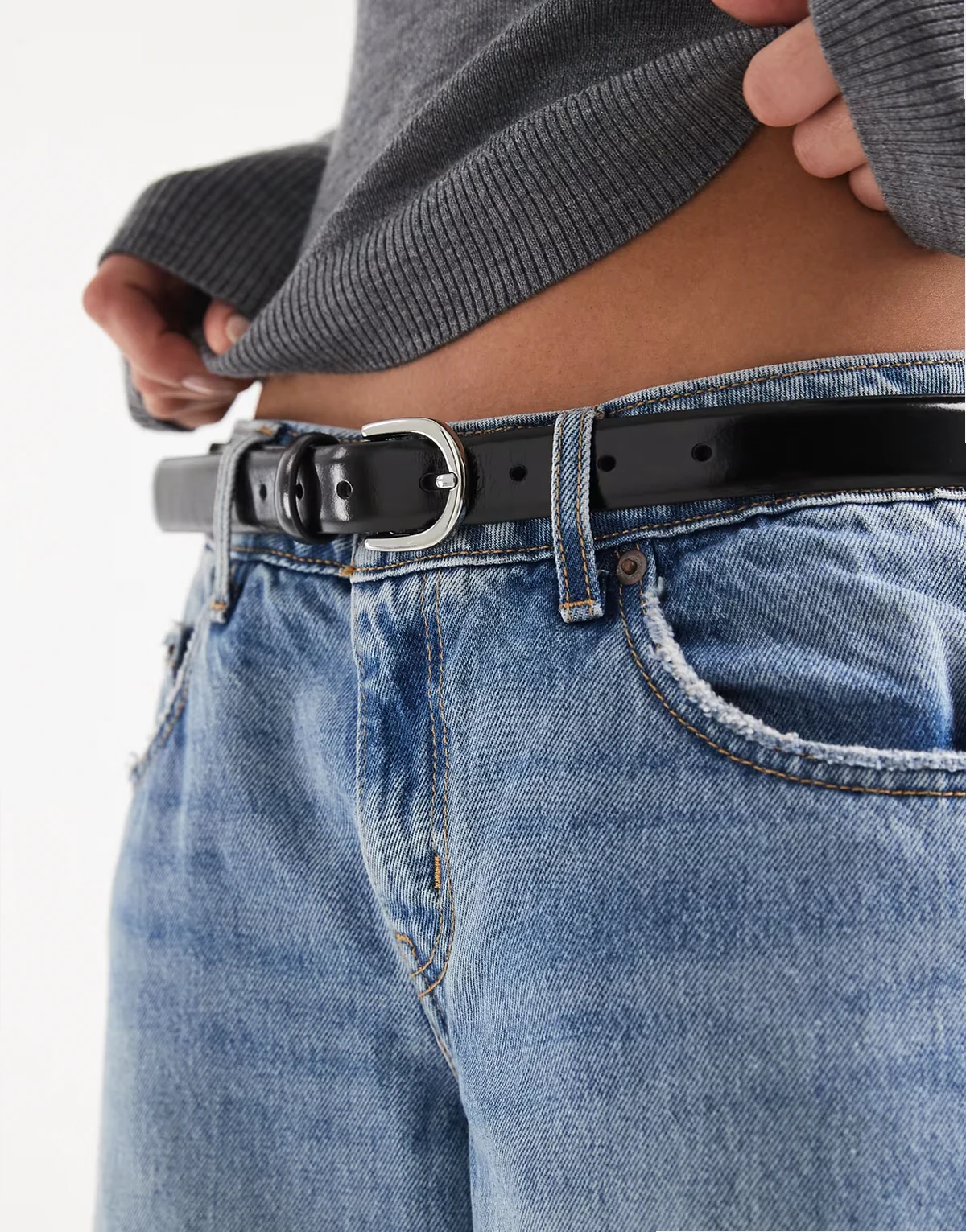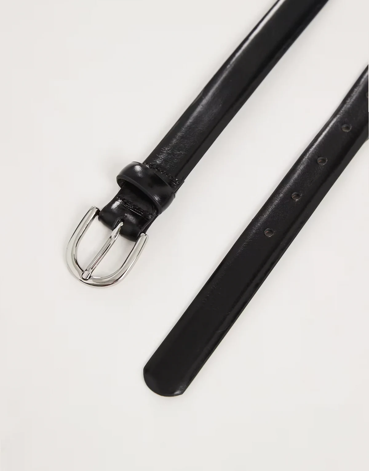 – Ledergürtel in Schwarz mit silberfarbener Schnalle