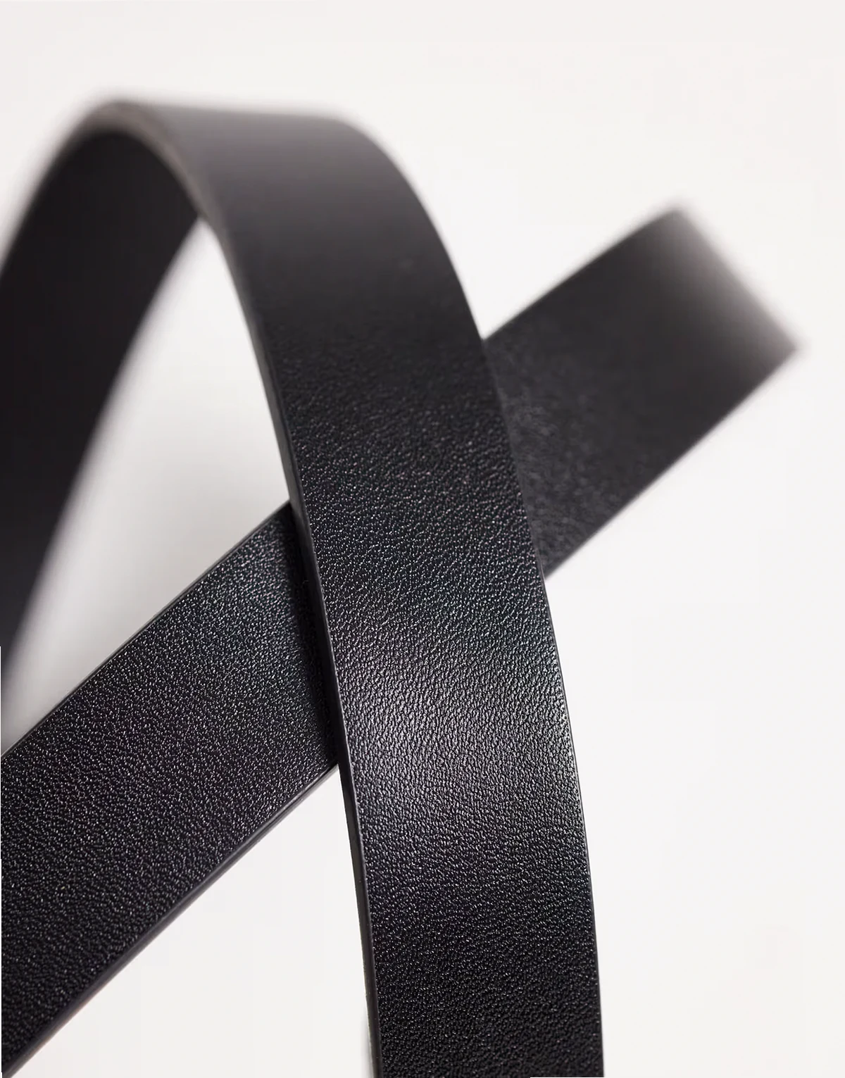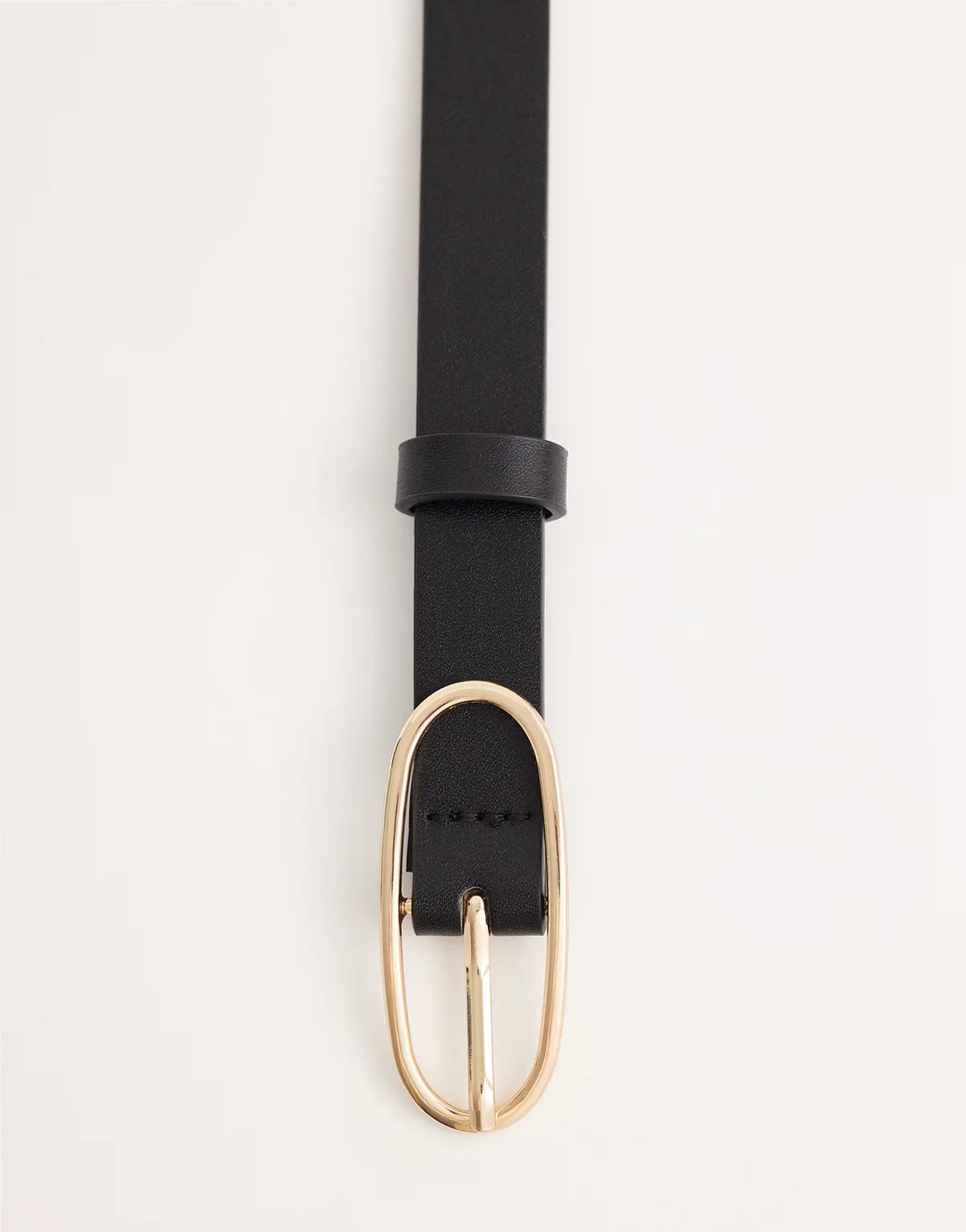 – Schmaler Gürtel in Schwarz mit runder Schnalle