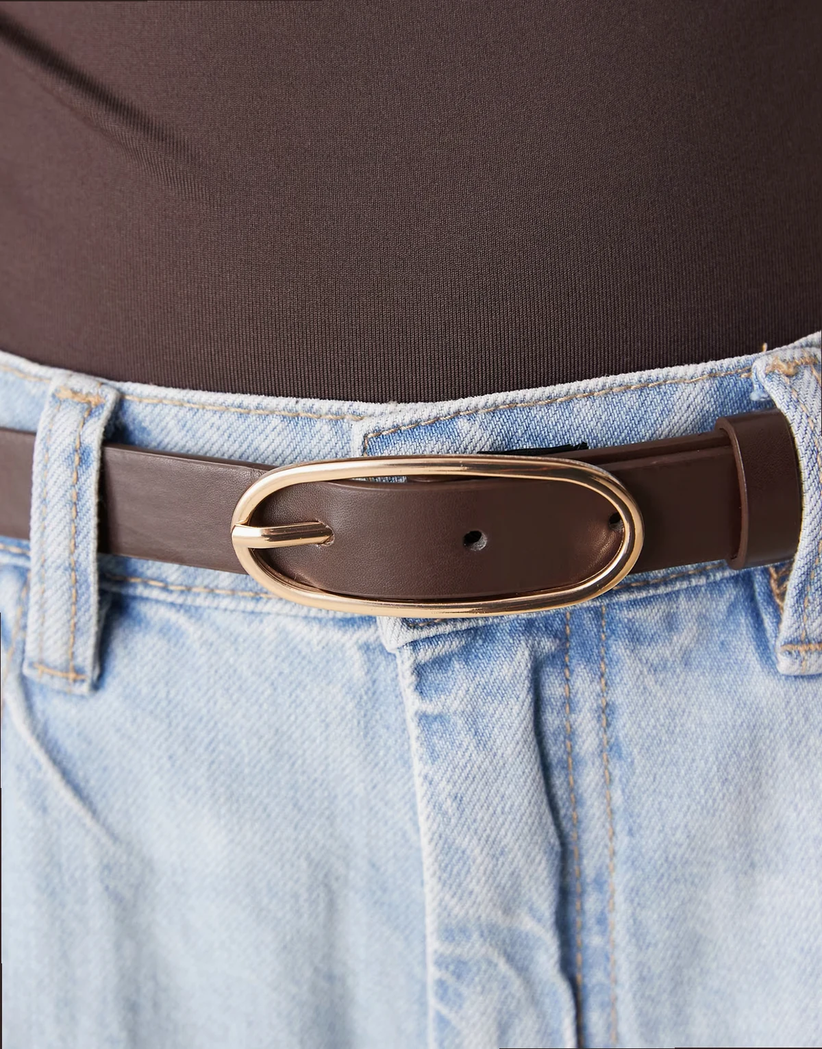 – Schmaler Gürtel in Braun mit runder Schnalle