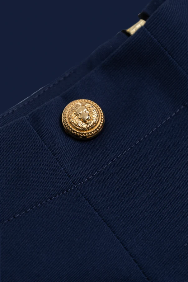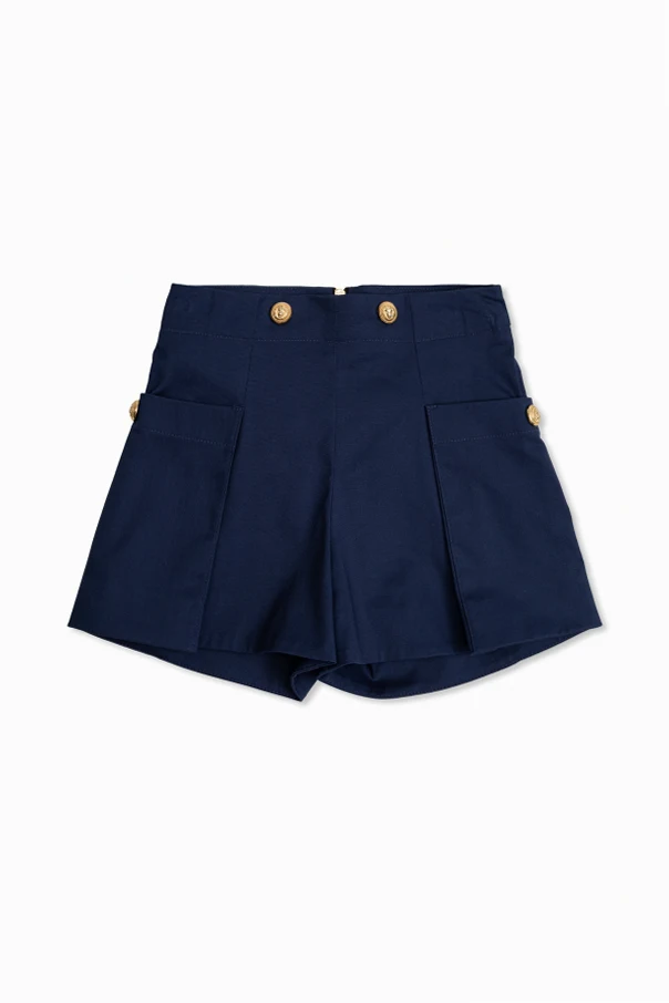 Die Shorts mit Taschen von Balmain Kids sind eine exquisite Wahl für junge Damen, die Wert auf handwerkliches Können und zeitlose Eleganz in der Kinderbekleidung legen. Das Modell mit klassischem, dezent ausgestelltem Schnitt und höherer Taille betont die Silhouette perfekt, während der intensive navy-blaue Farbton, der durch kein Muster unterbrochen wird, aristokratische Schlichtheit ausstrahlt.