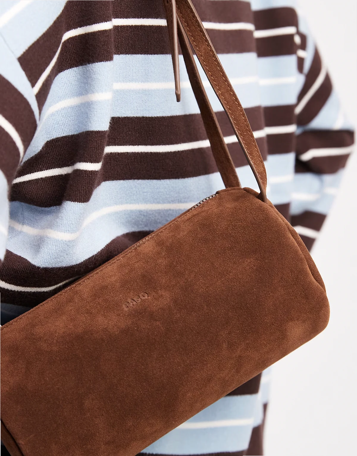 – Sporttasche aus Wildlederimitat in Dunkelbraun mit zwei Riemen