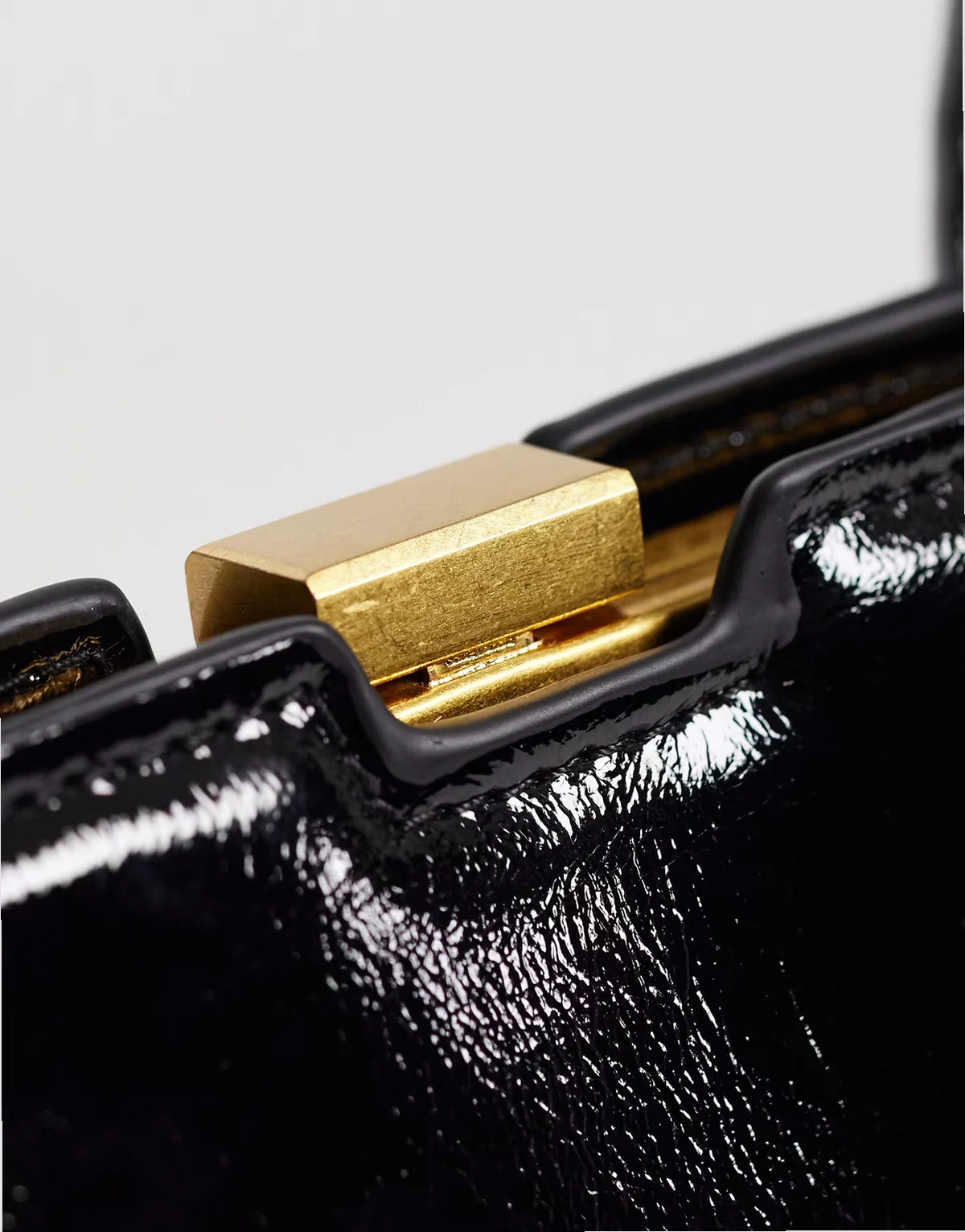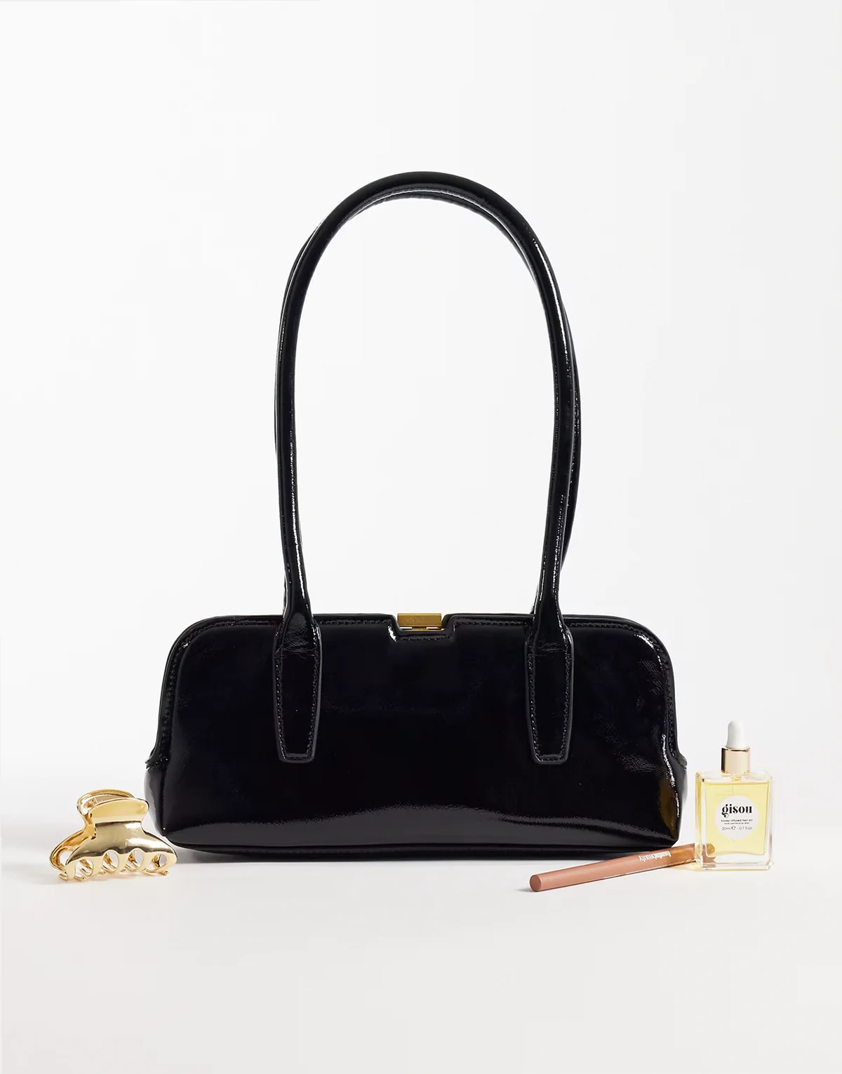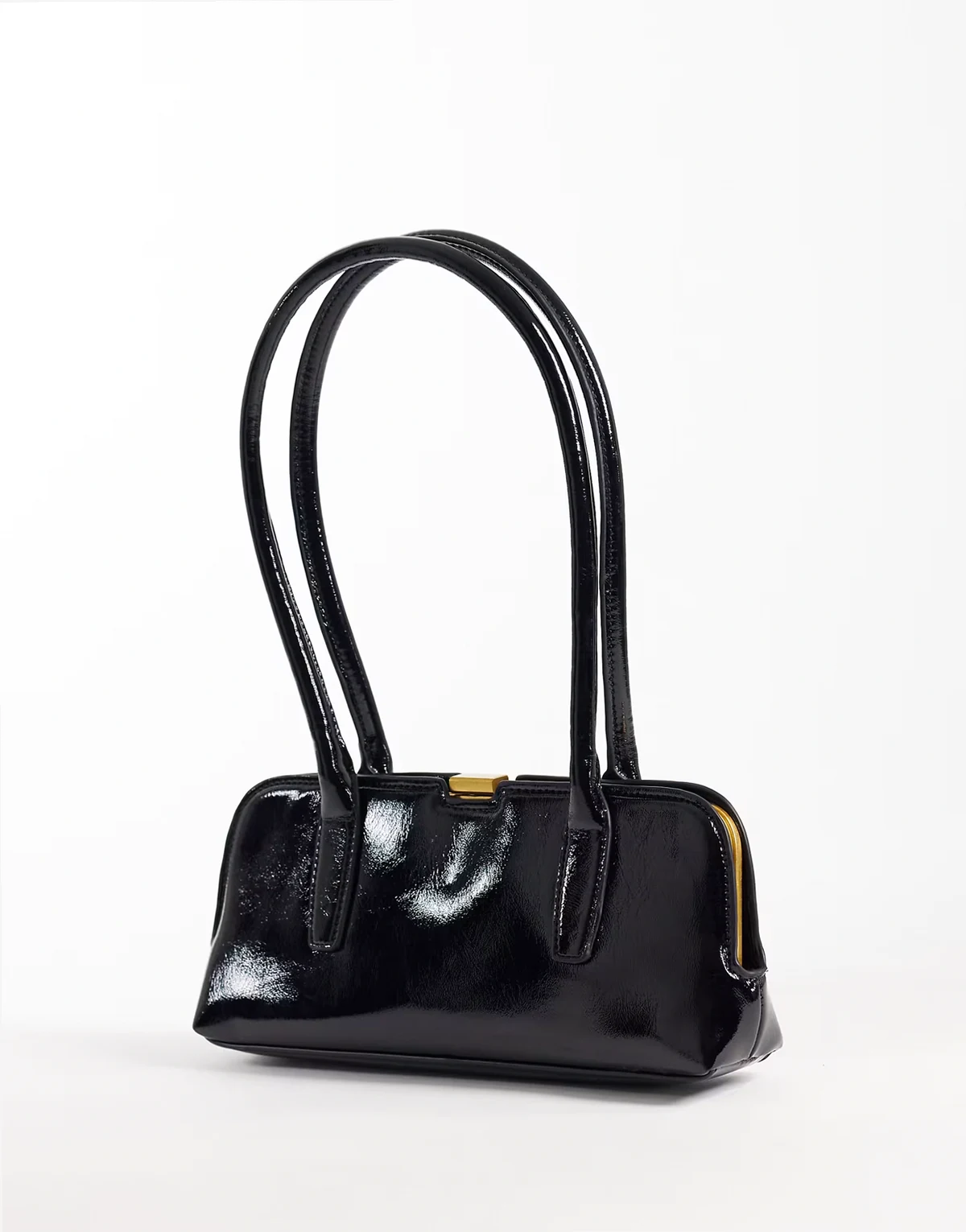 – Hochglänzende Tasche mit länglichem Griff in Schwarz