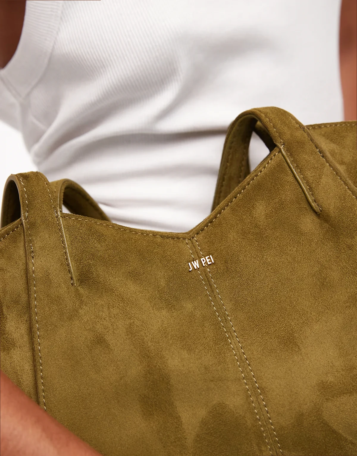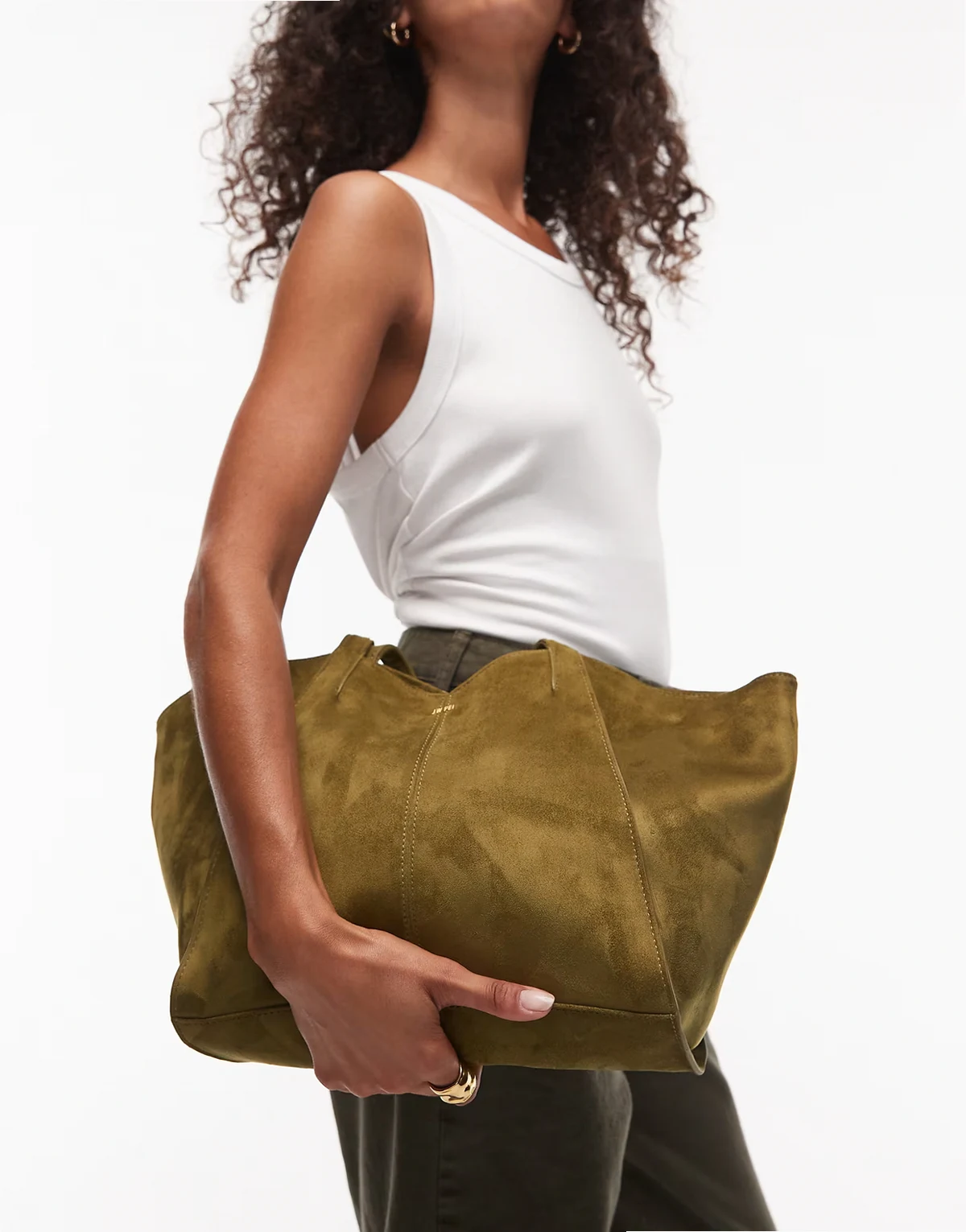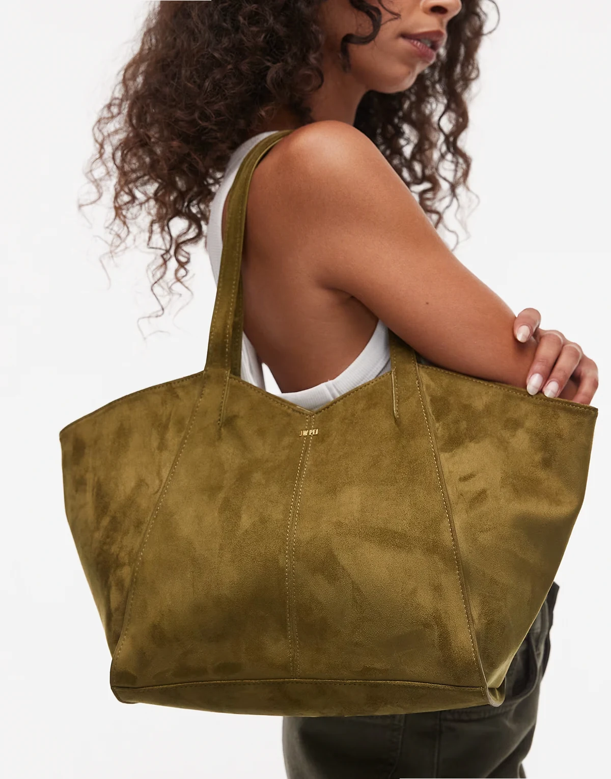 – Kiana – Große Tragetasche aus Wildlederimitat in Olivgrün