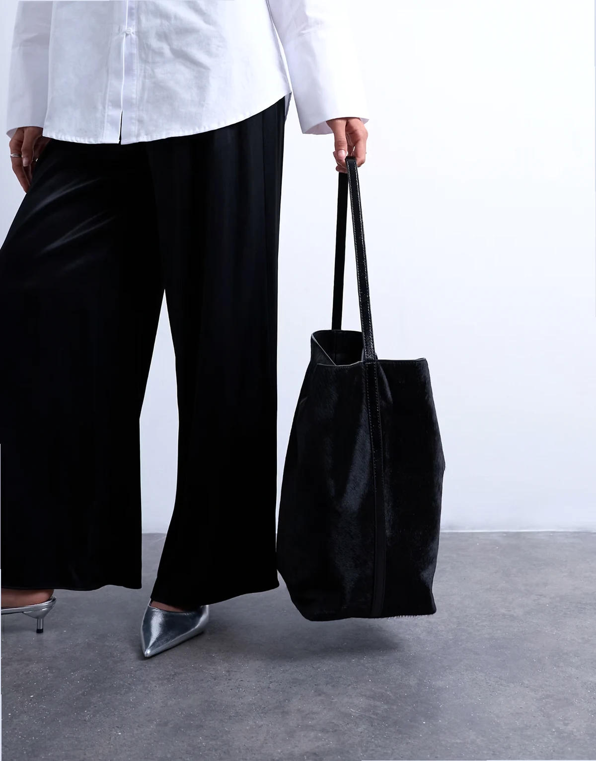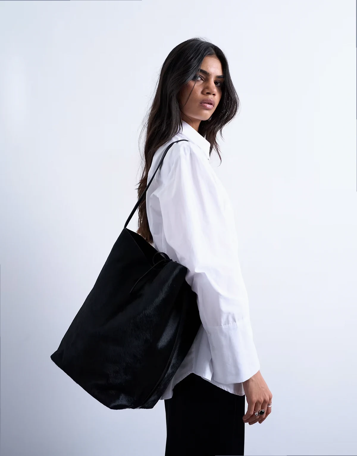 Die Luna-Tasche eignet sich für die Arbeit oder fürs Wochenende und verfügt über ein schlankes und schlichtes schwarzes Design mit zwei Schulterriemen zum Tragen. Sie hat eine weiche, strukturierte Oberfläche.