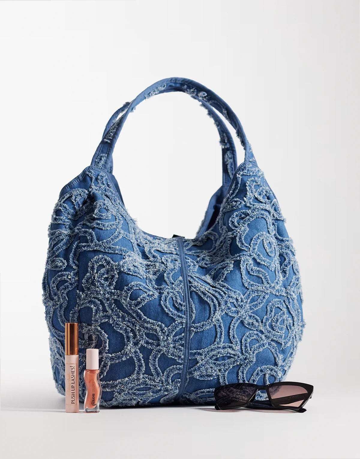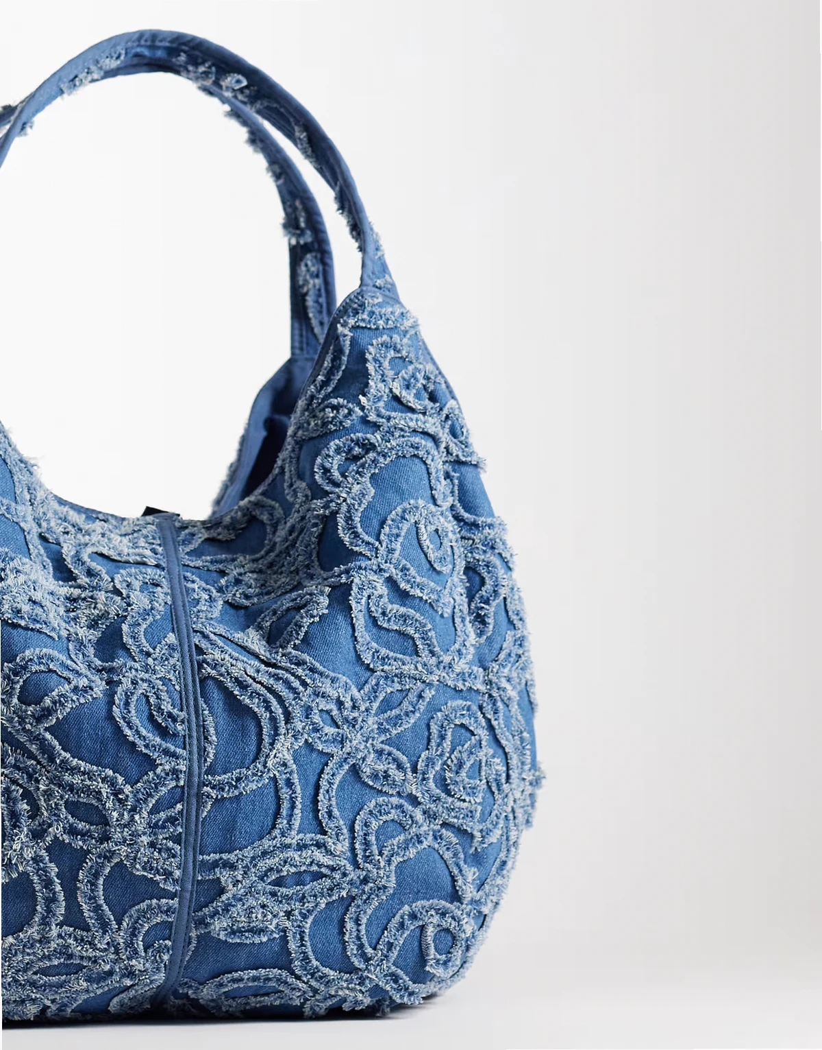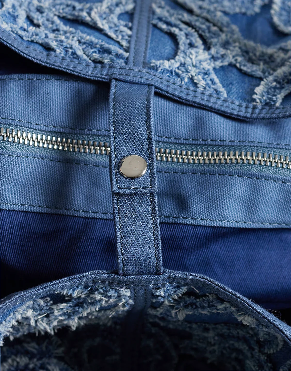 Becksöndergaard – Raika – Weiche Baumwoll-Tragetasche in Jeansblau mit Blumenstickerei