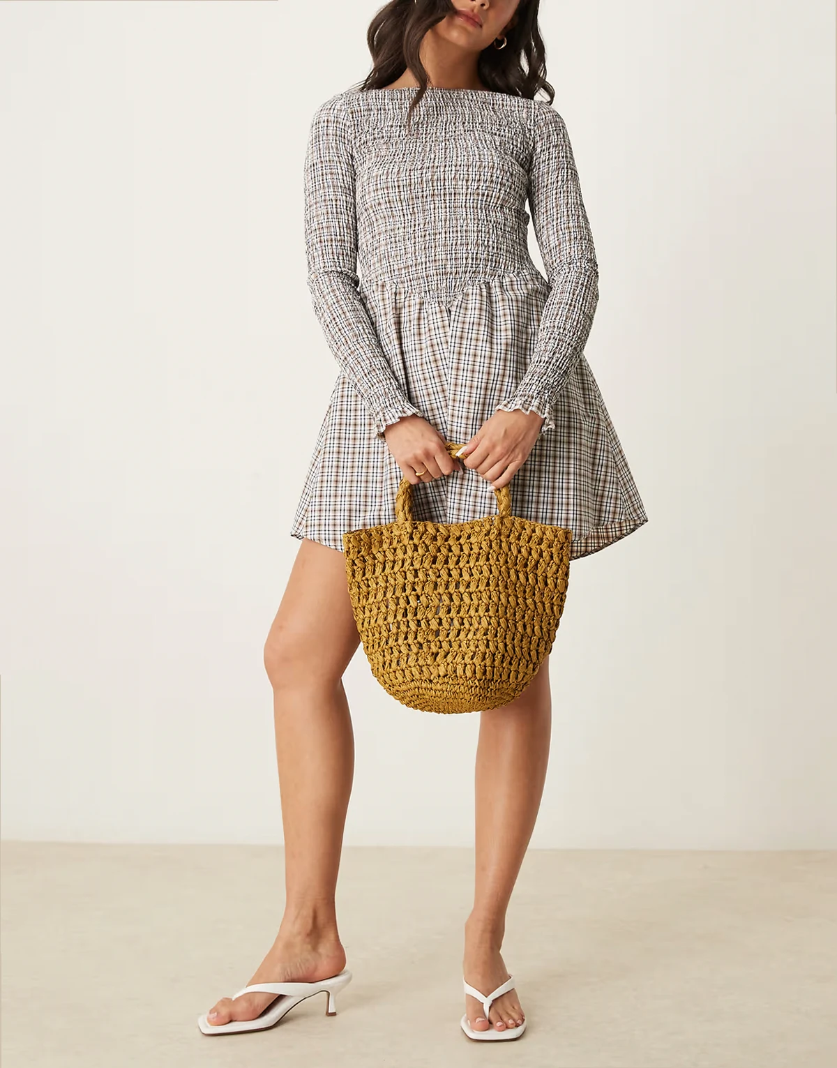 – Bast-Beuteltasche in Hellbraun mit Futter