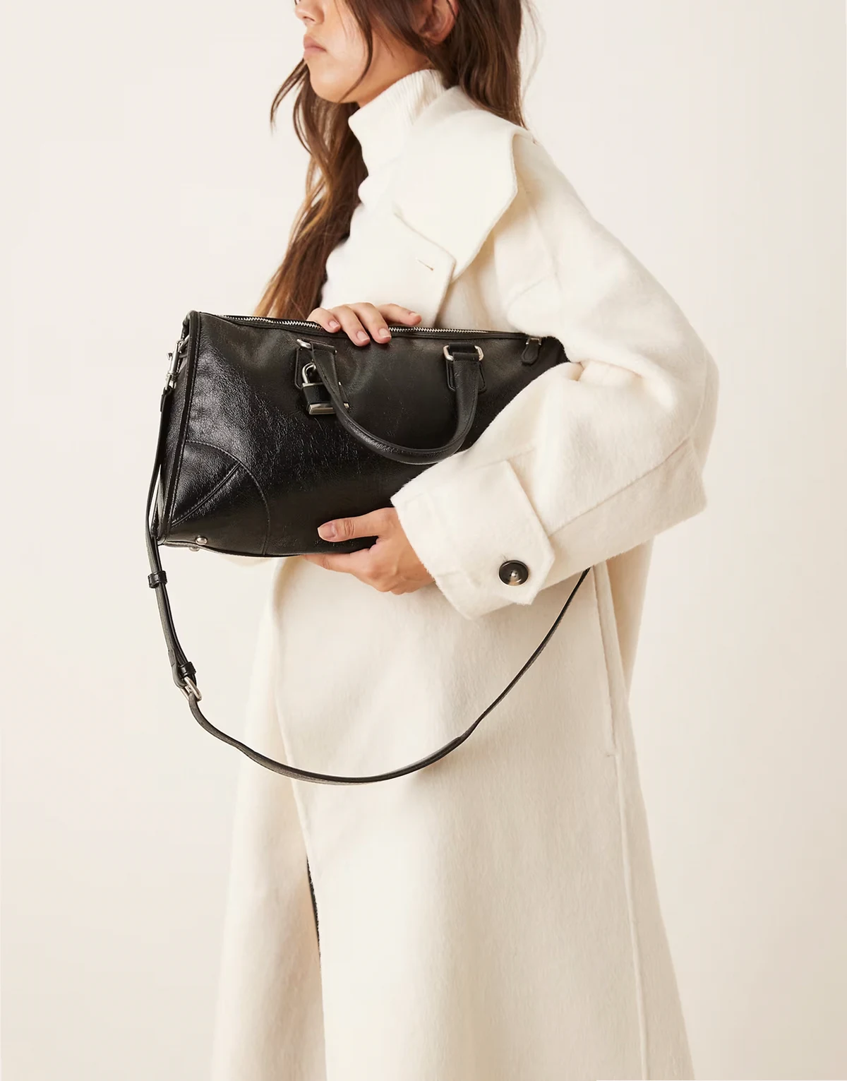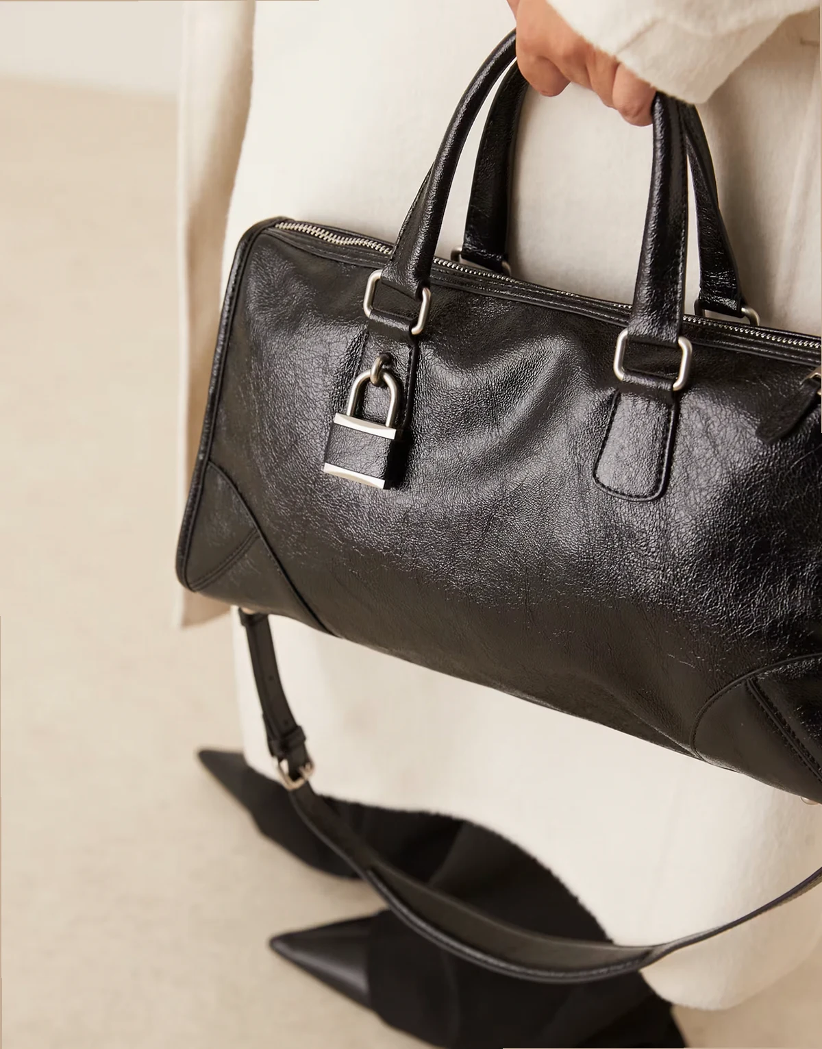 – Kastige Tasche in Schwarz mit abnehmbarem Umhängeriemen