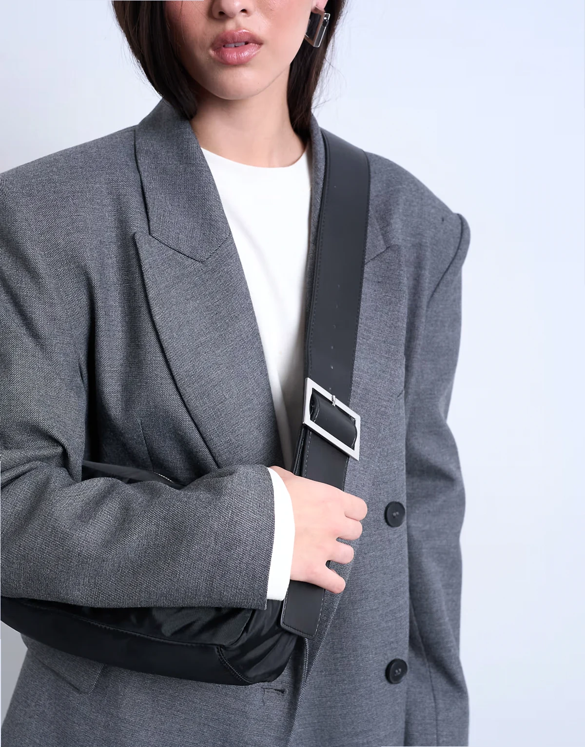 Die Kylie-Tasche ist aus glattem, gewebtem Stoff gefertigt und mit eleganten, silberfarbenen Metalldetails versehen. Sie ist mit einem kontrastierenden, verstellbaren Riemen ausgestattet und kann für ein vielseitiges Styling über der Schulter oder quer über dem Körper getragen werden. Ein sicherer Reißverschluss bietet Platz für deine Basics.