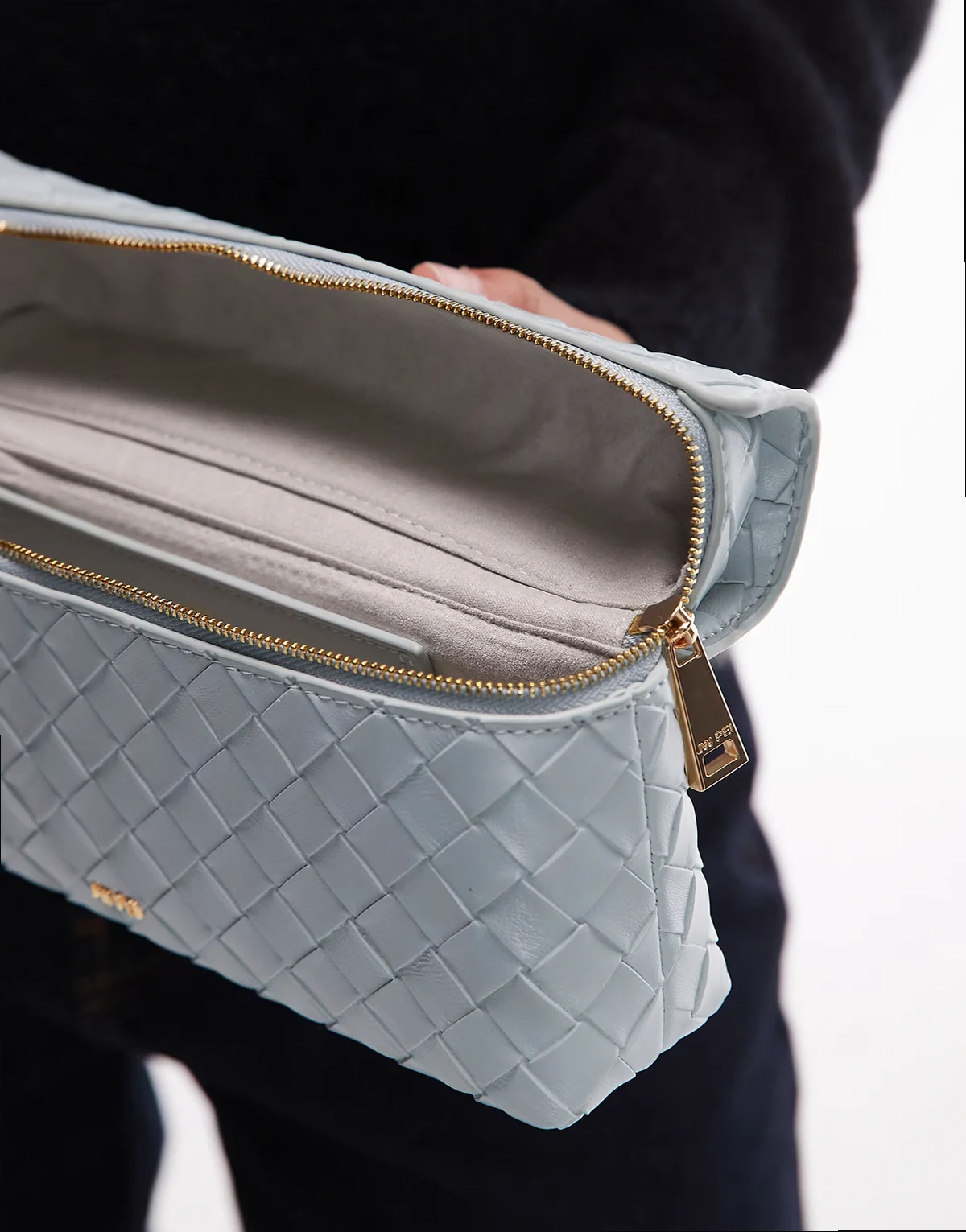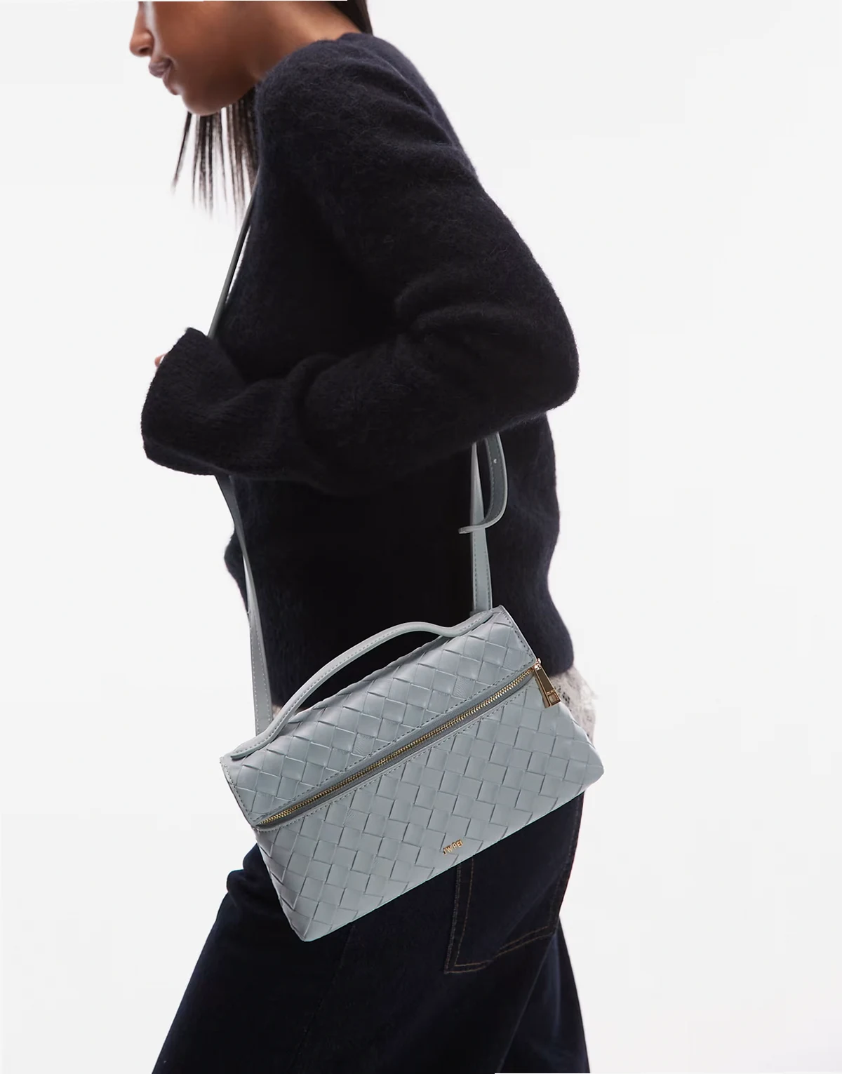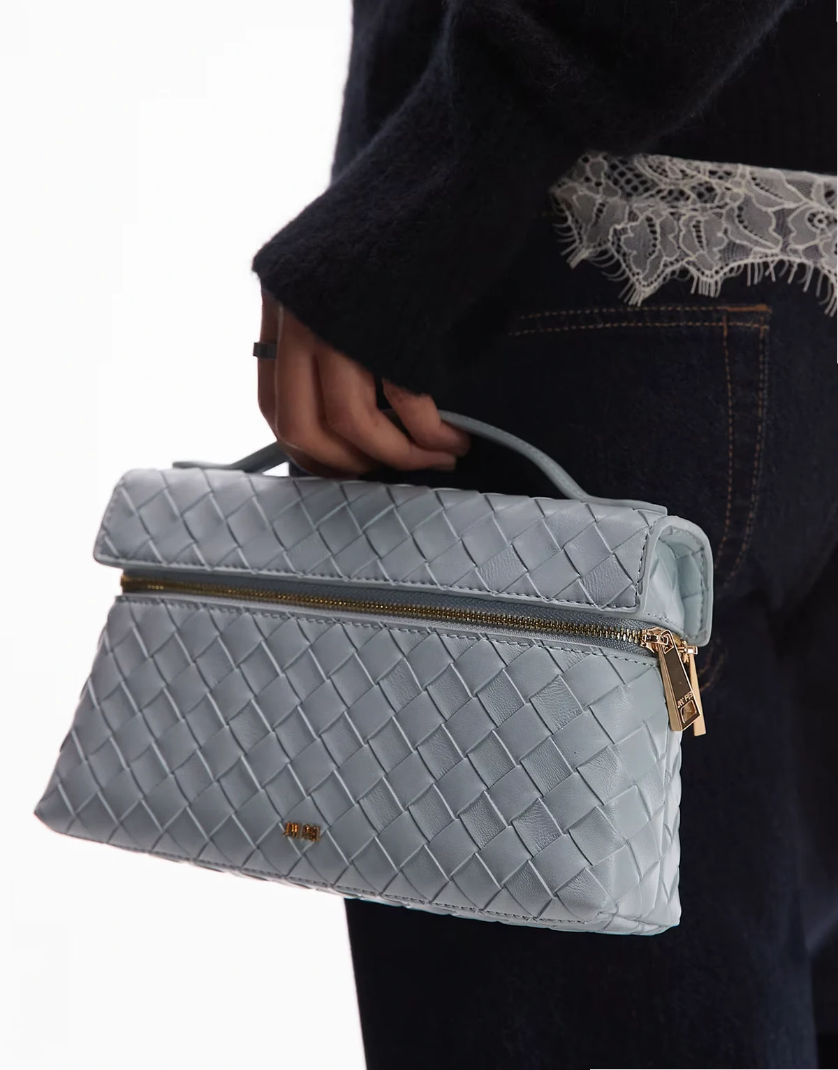 JW – Thea – Tasche in Eisblau mit Webstruktur und Tragegriff oben