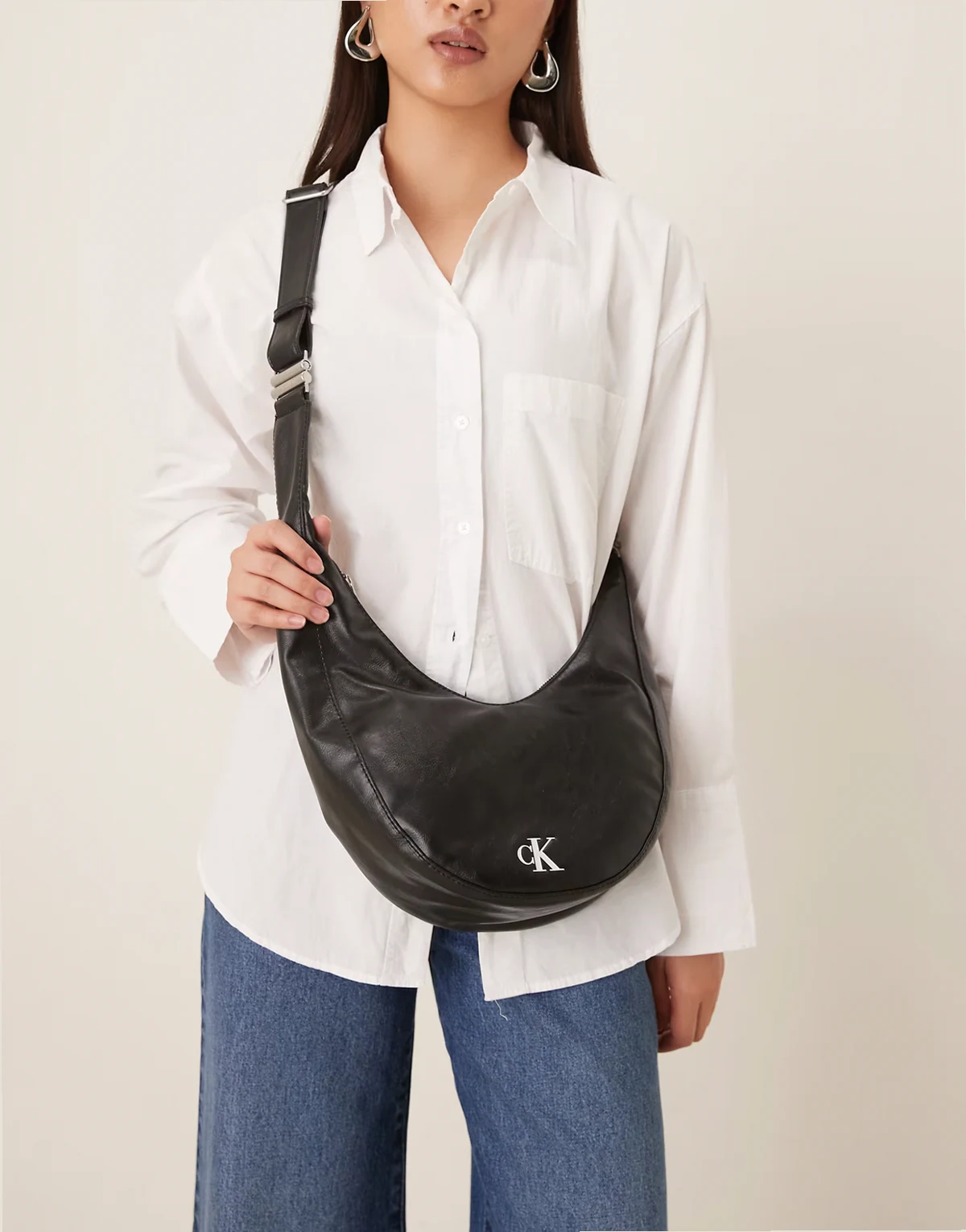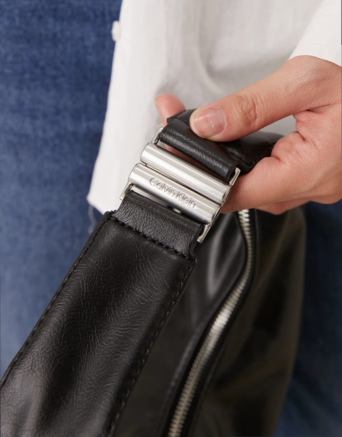 – Glänzende, umwandelbare Moon-Tasche in Schwarz mit Schnalle