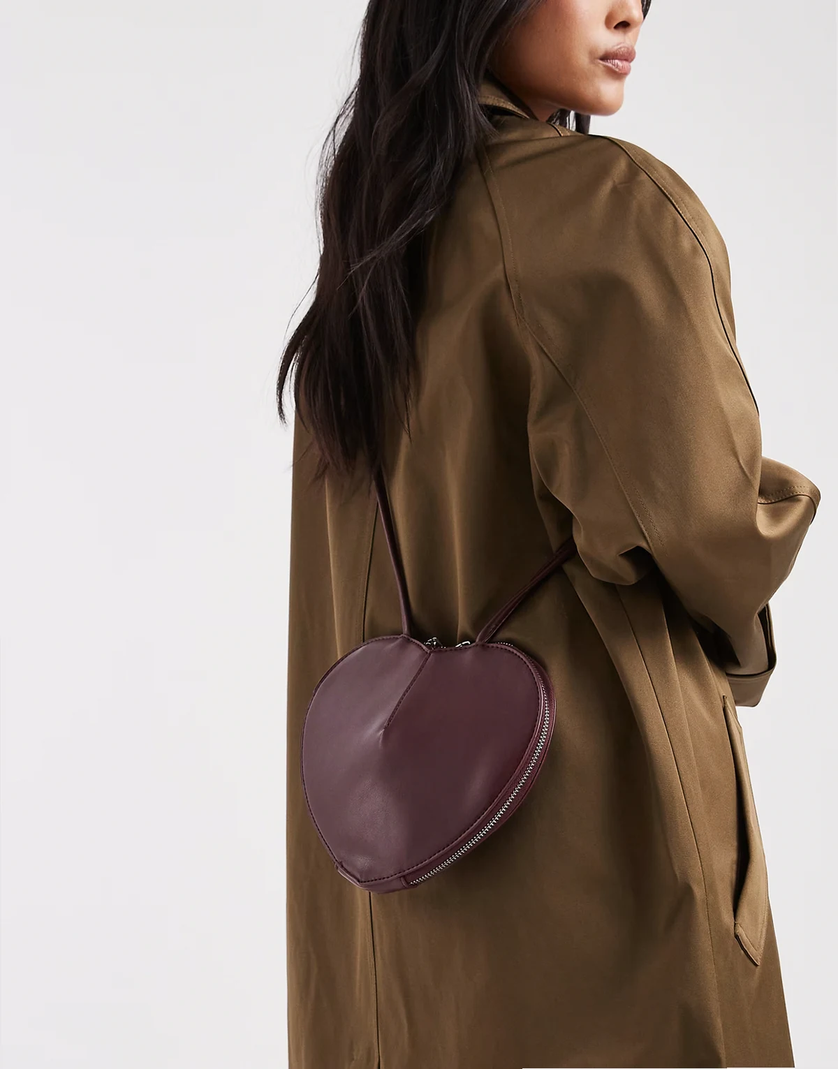 – Kleine, quadratische Umhängetasche aus weichem Leder in Burgunderrot