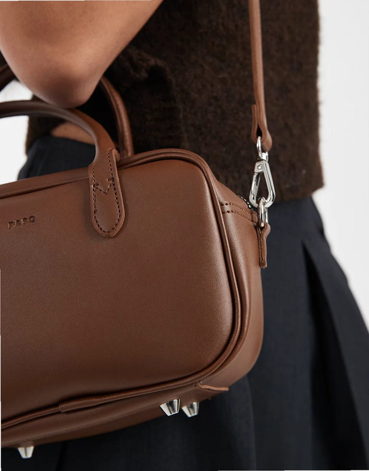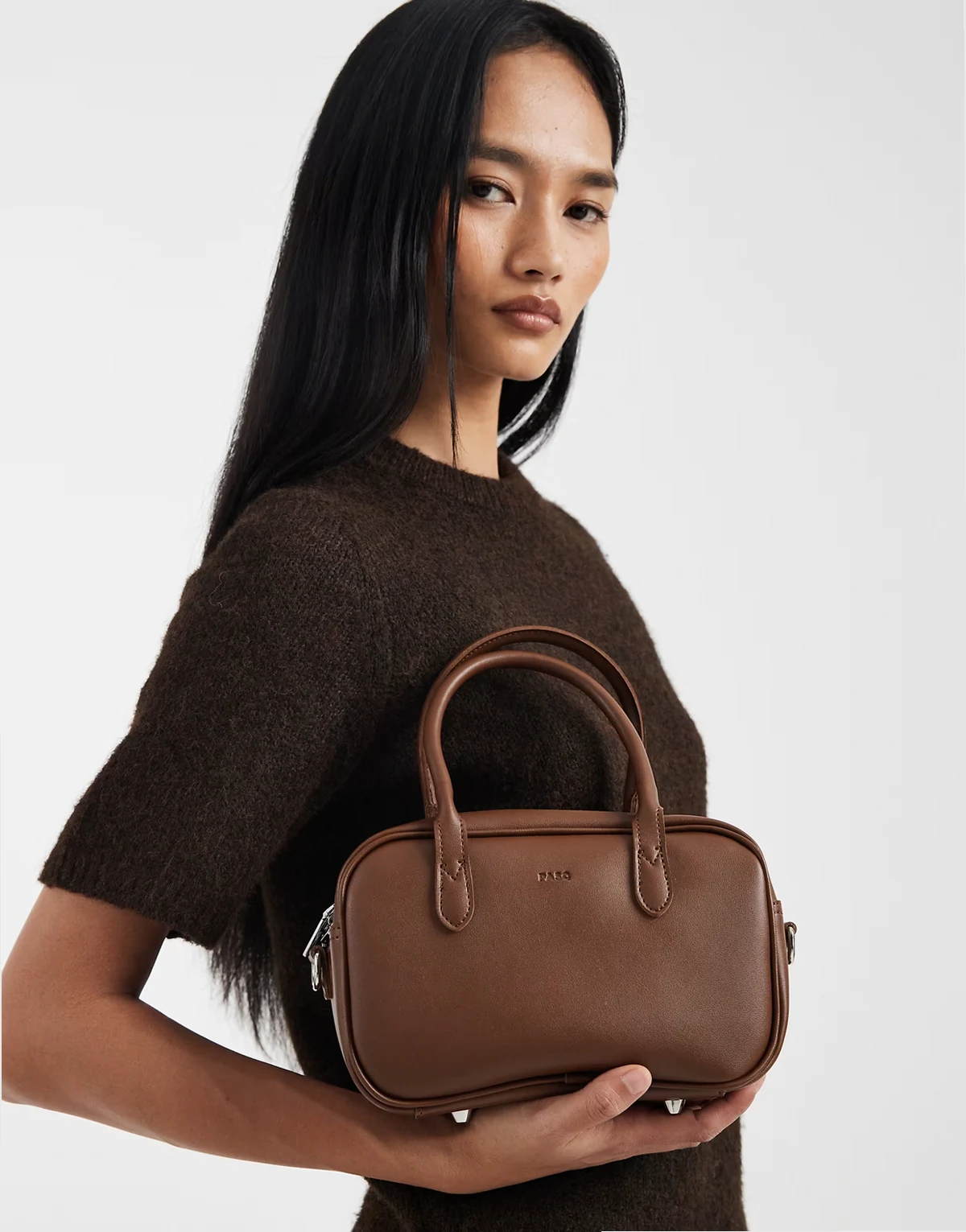 – Kleine Handtasche in Braun mit Henkel und Umhängeriemen