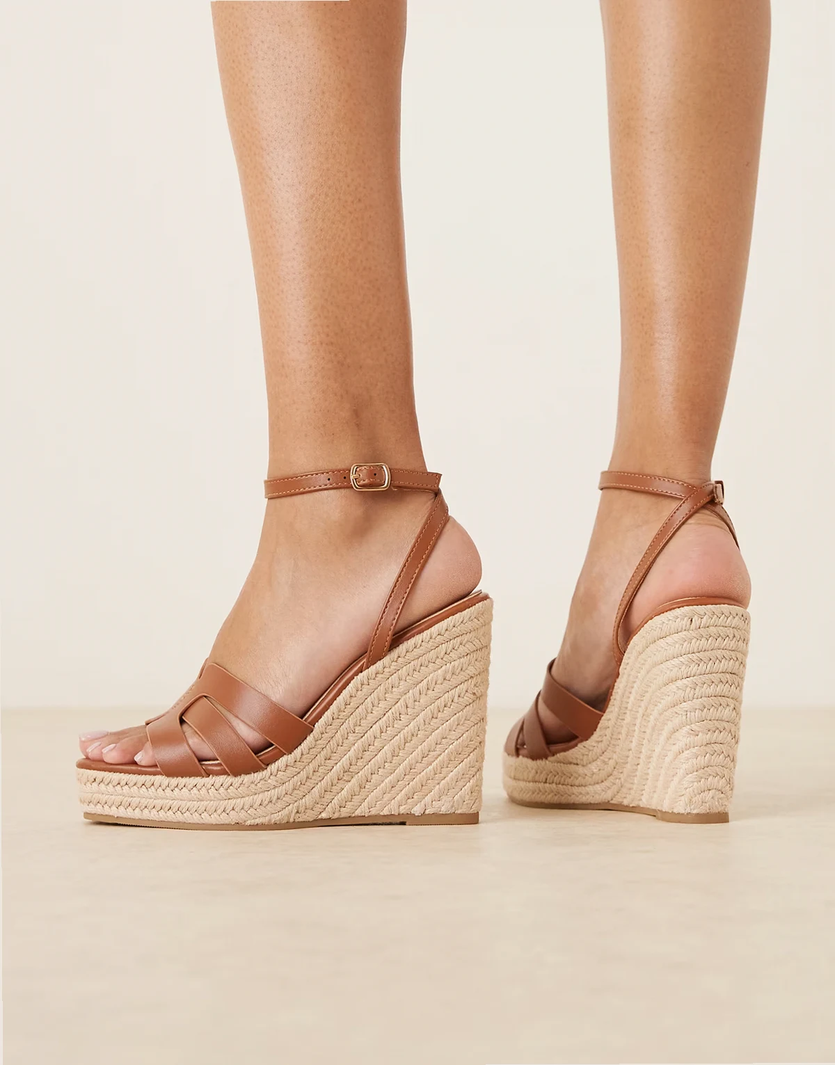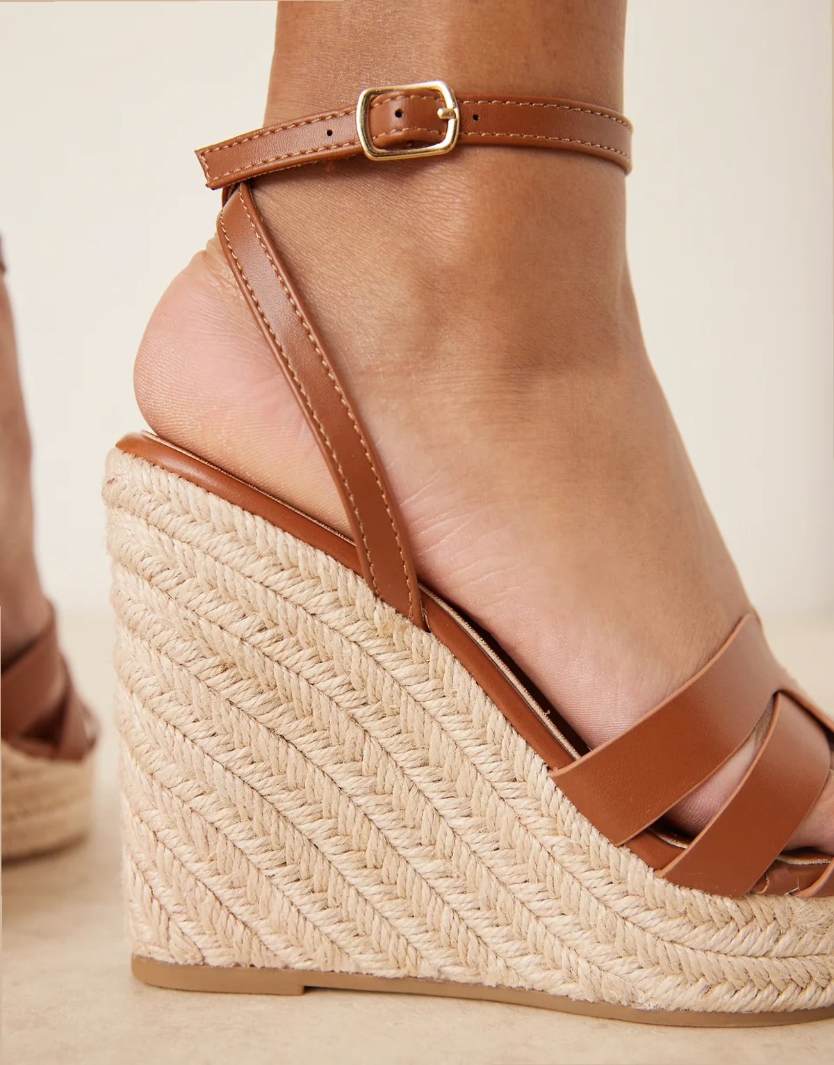 – Espadrilles-Sandaletten in Hellbraun mit Keilabsatz