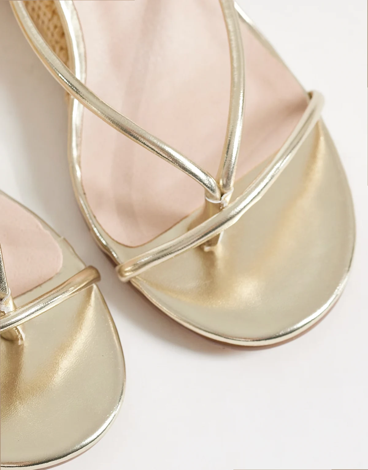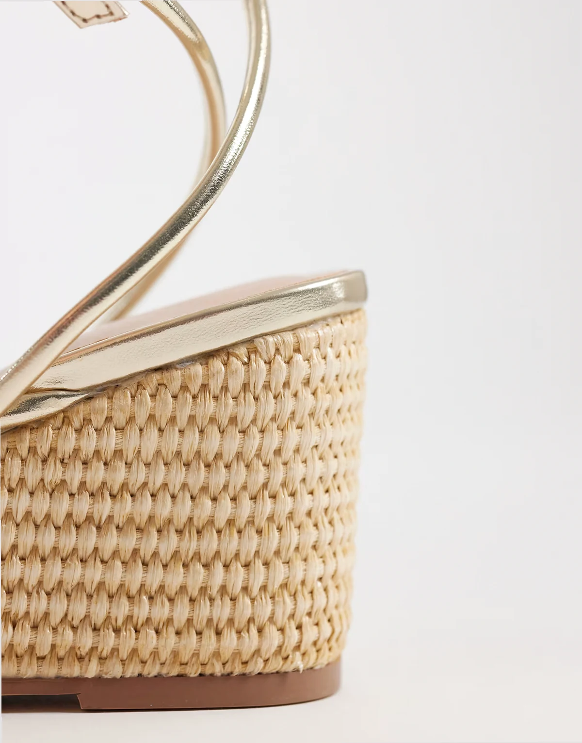 – Mary – Keilabsatz-Sandaletten in Gold mit Riemchendesign, weite Passform