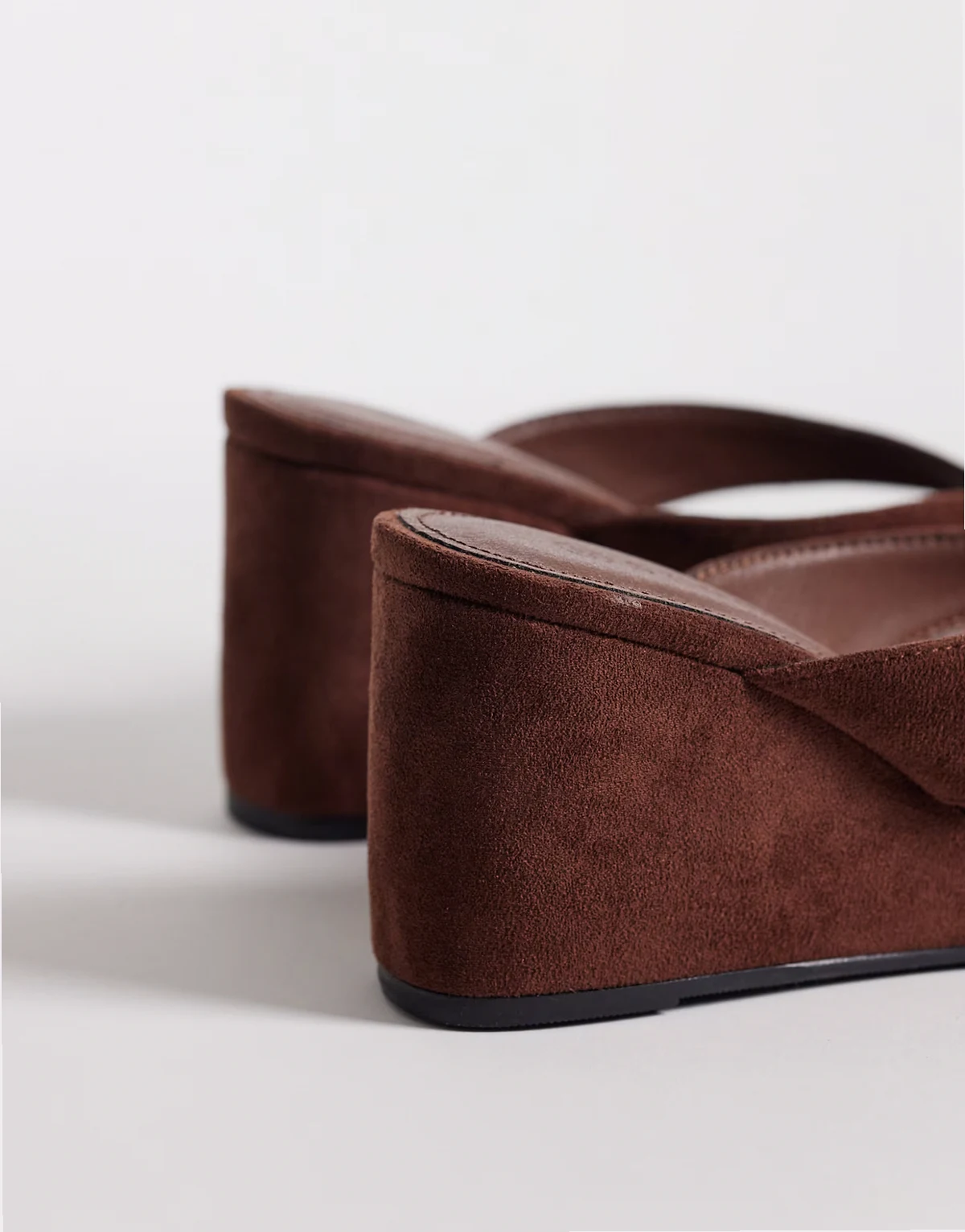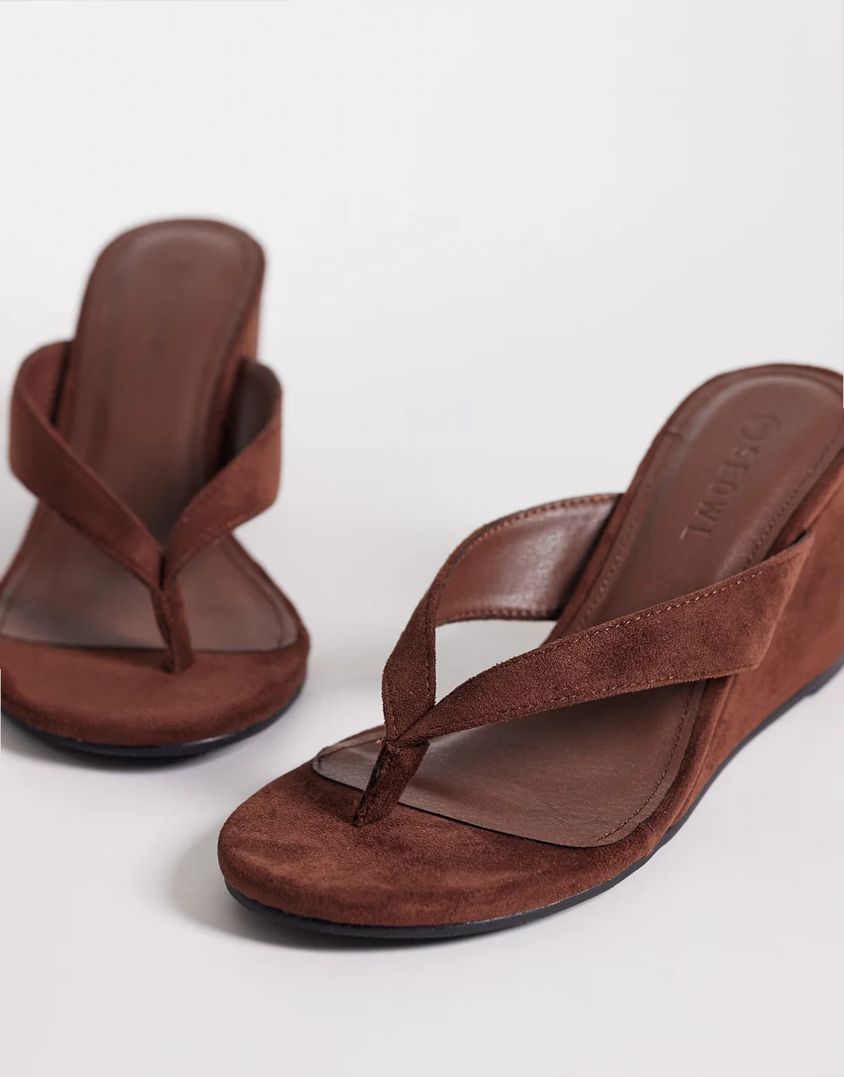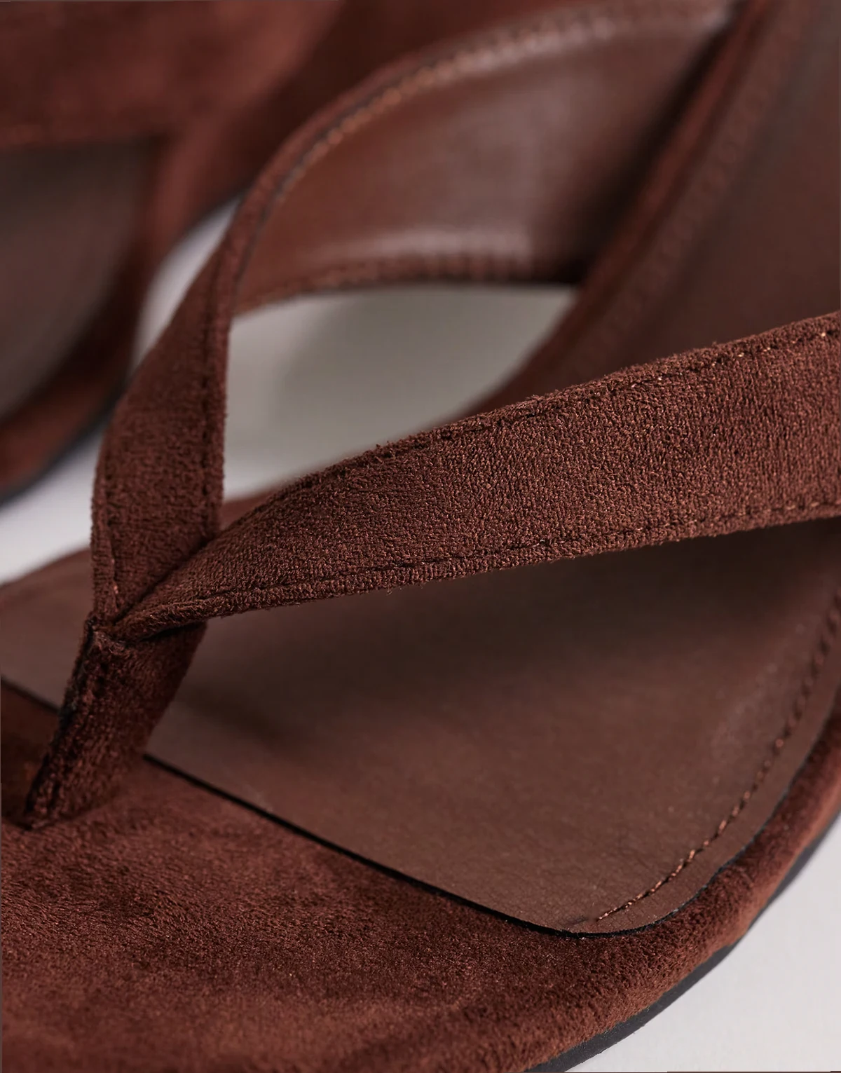 – Ines – Zehenstegsandalen in Braun mit Keilabsatz und Mikrostruktur