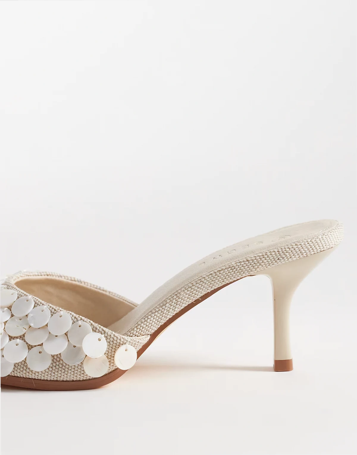 – Verzierte Mules aus Bast in Koralle mit Kitten Heel