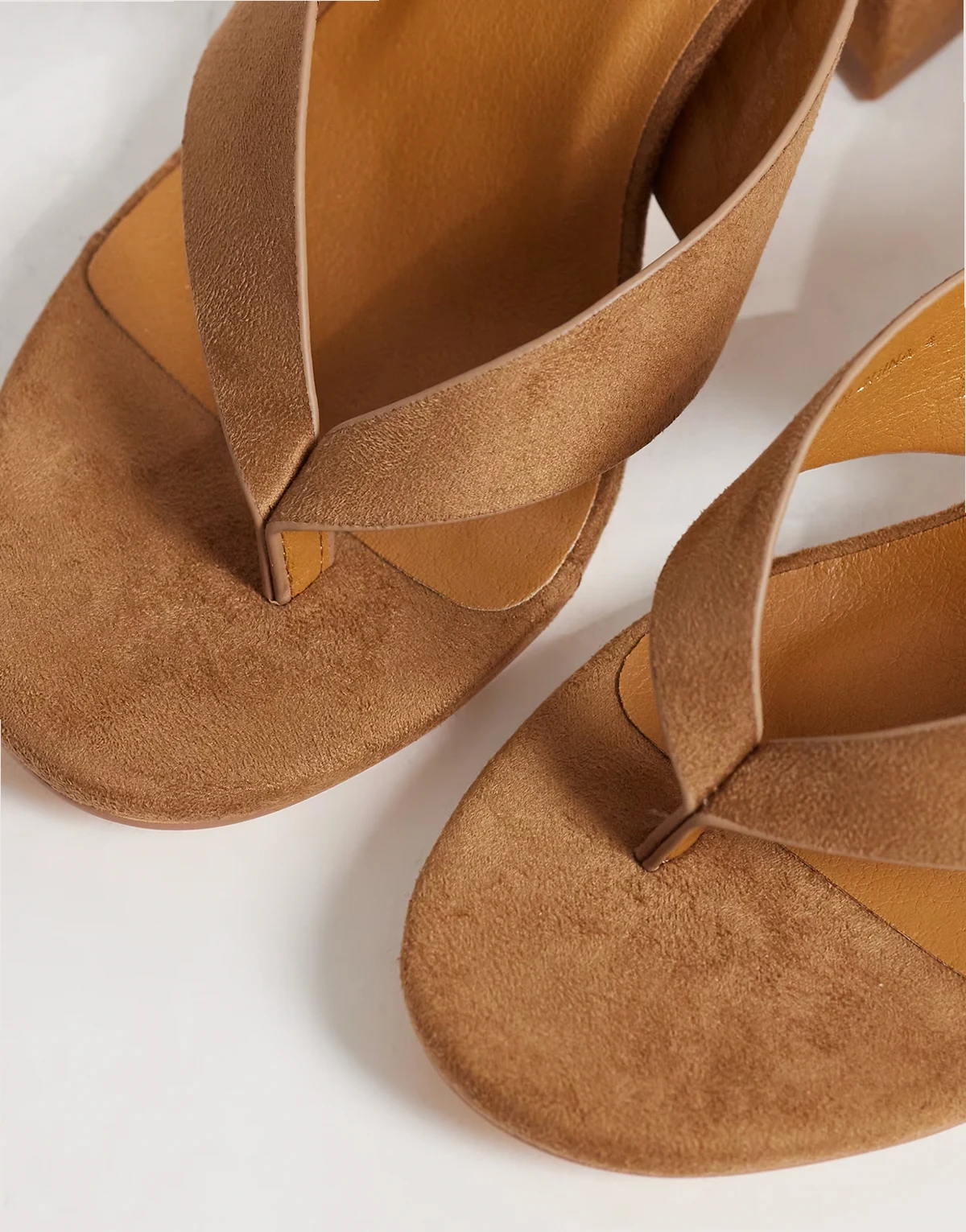 – Elle – Zehenstegsandalen in Mokka mit Absatz, weite Passform