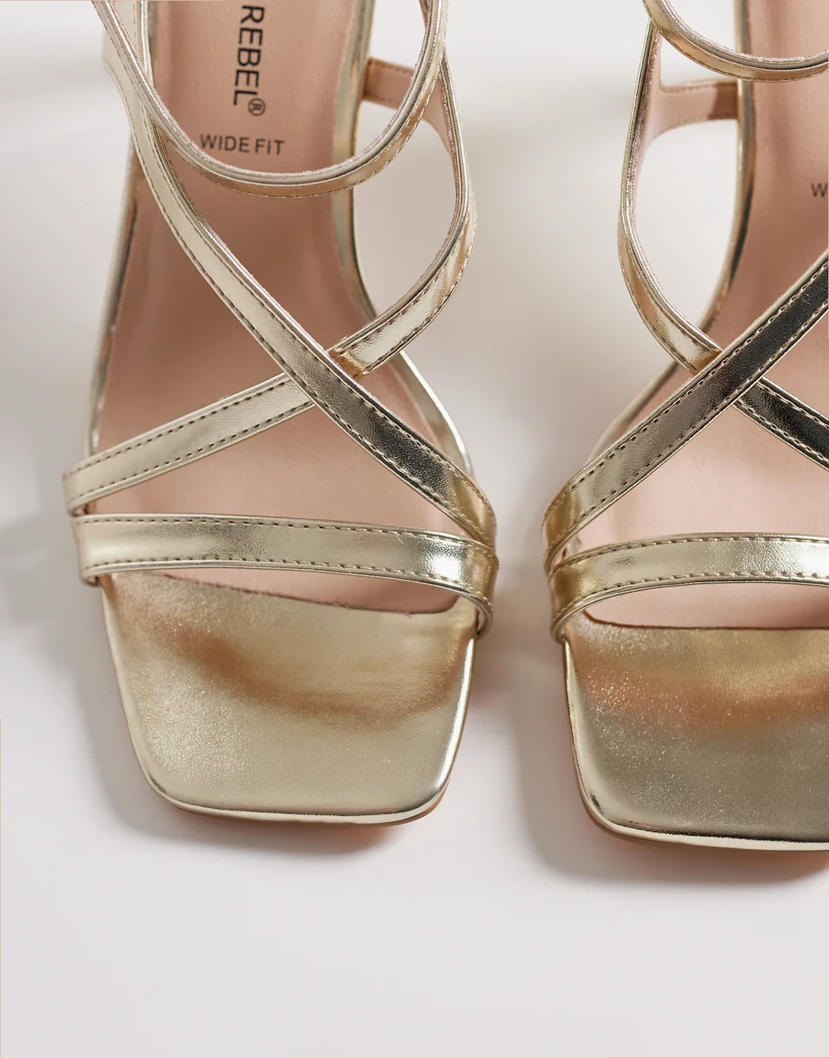 London Rebel – Wide Fit – Elin – Riemchen-Sandaletten in Gold, weite Passform