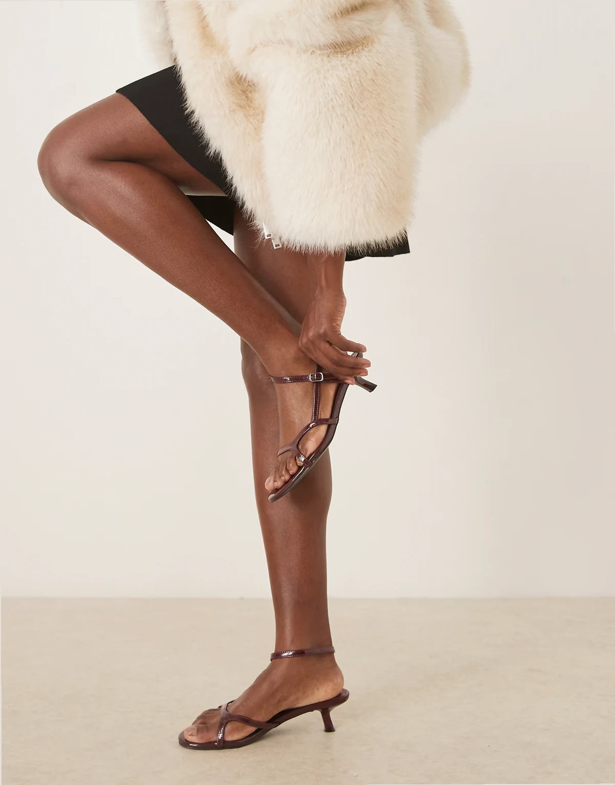 4. – Riemchen-Sandaletten in burgunderroter Lackoptik mit Kitten-Absatz