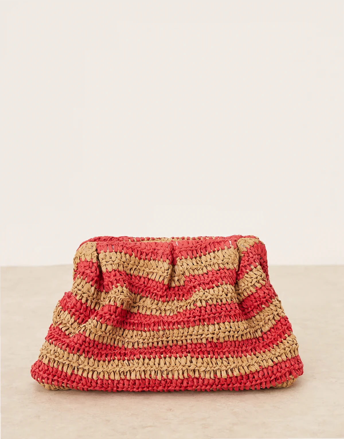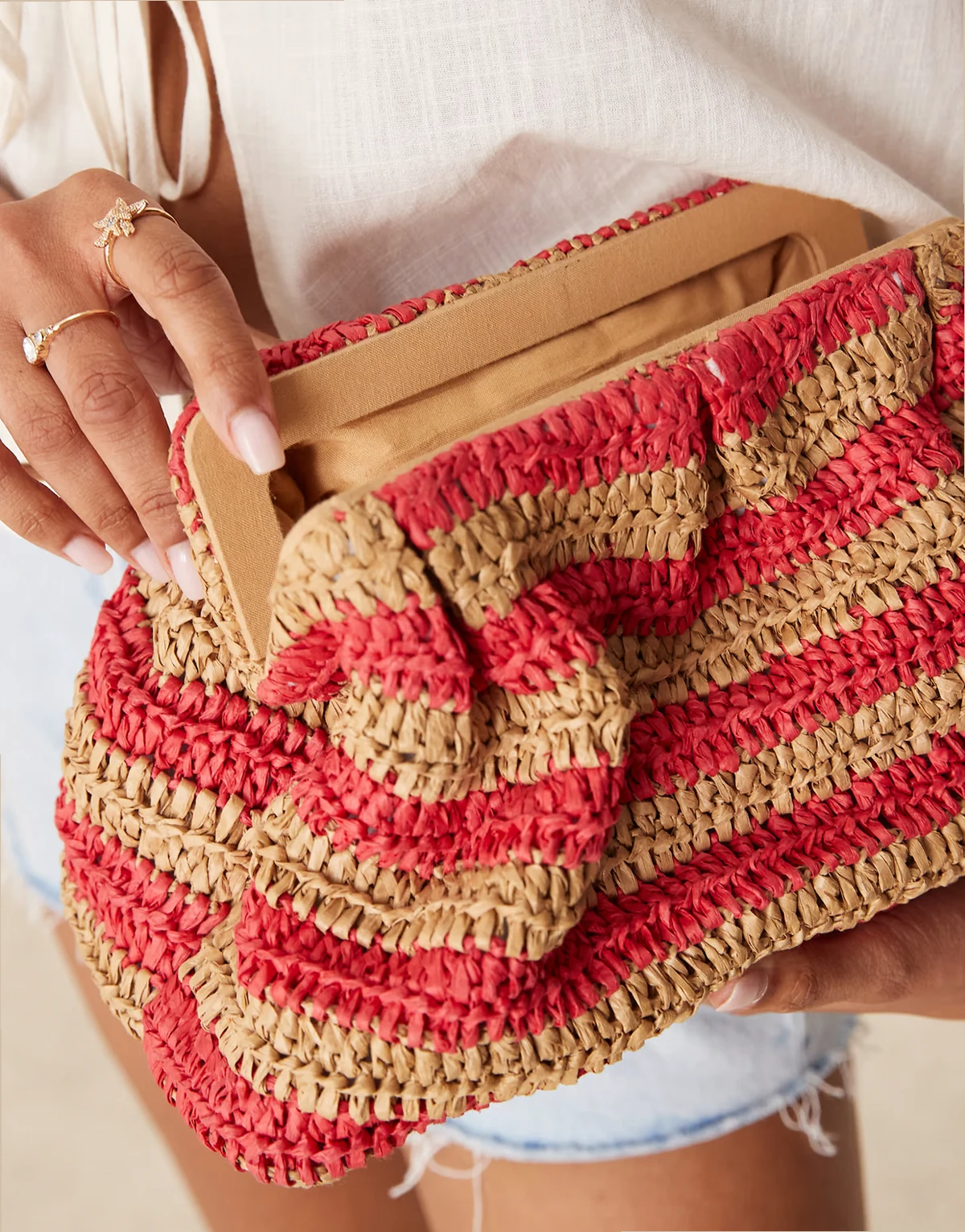 – Tragetasche aus Stroh in Rot und Natural gestreift