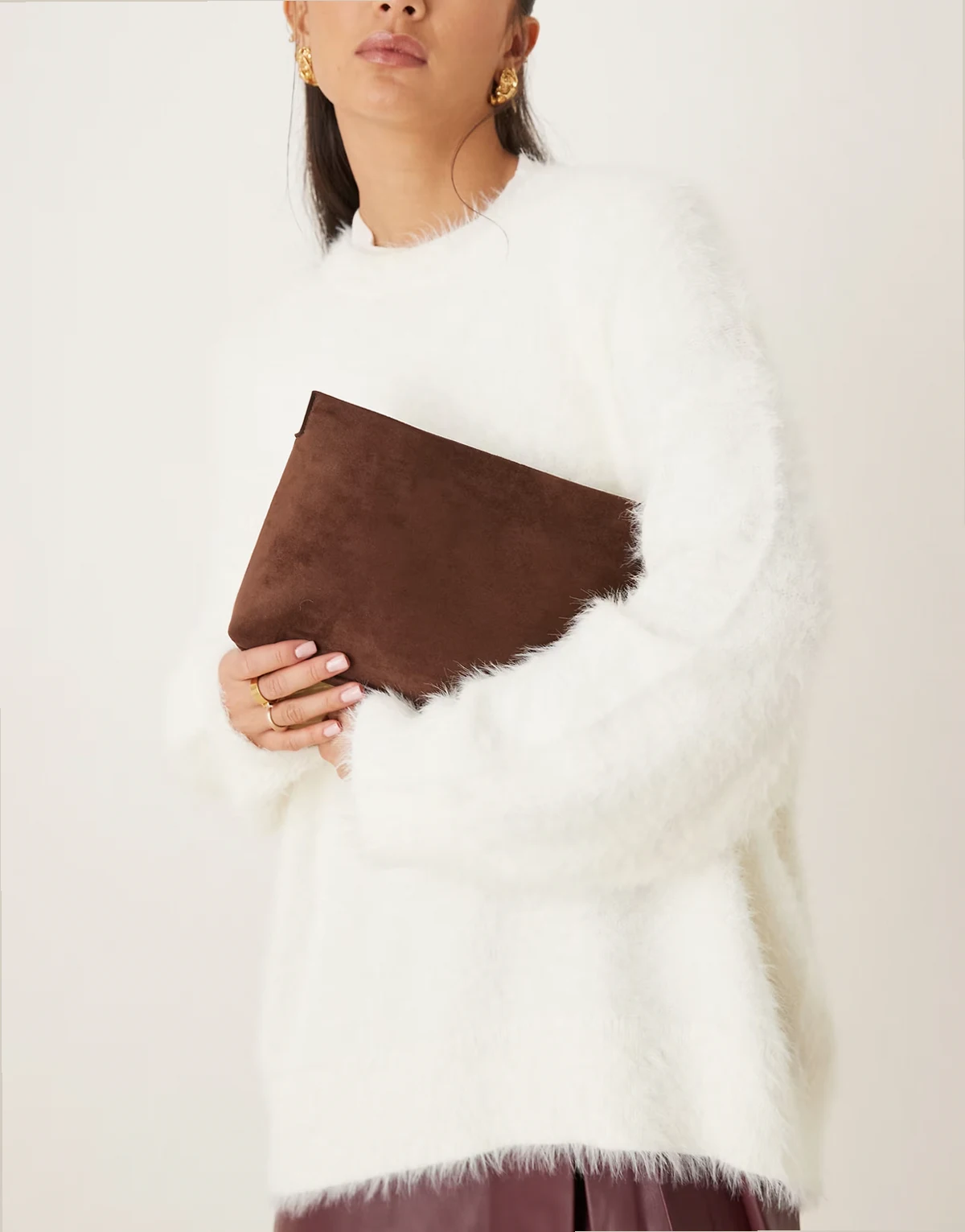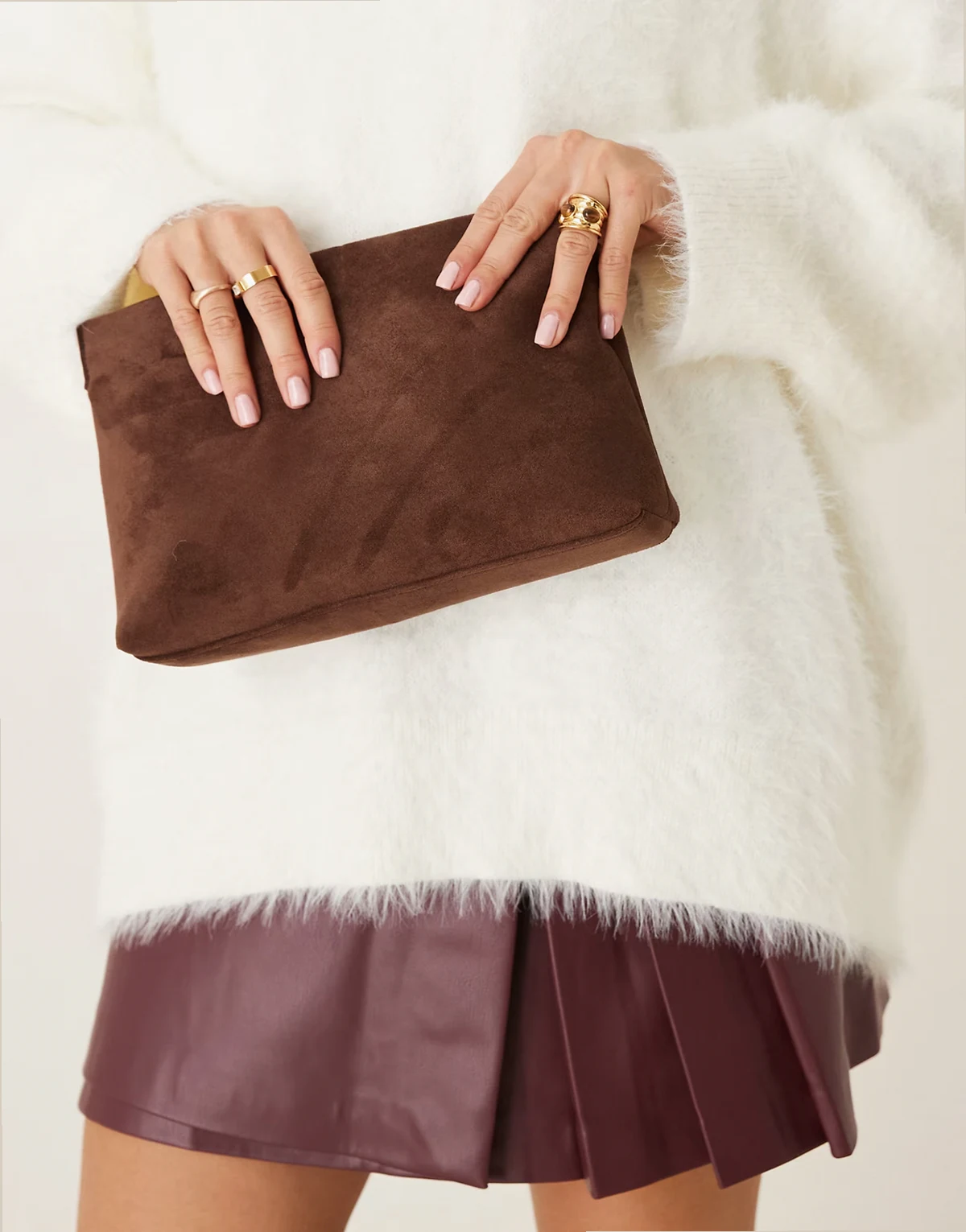 – Clutch aus Wildlederimitat in Schokobraun mit Reißverschluss oben