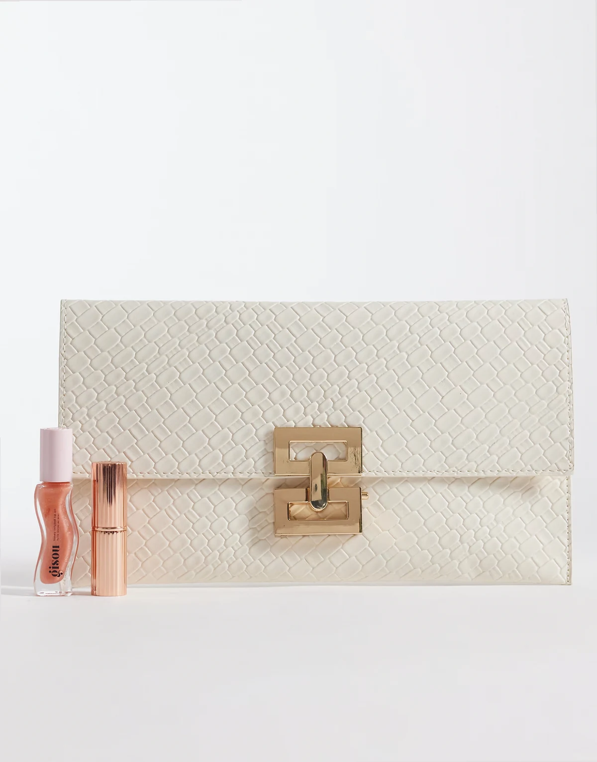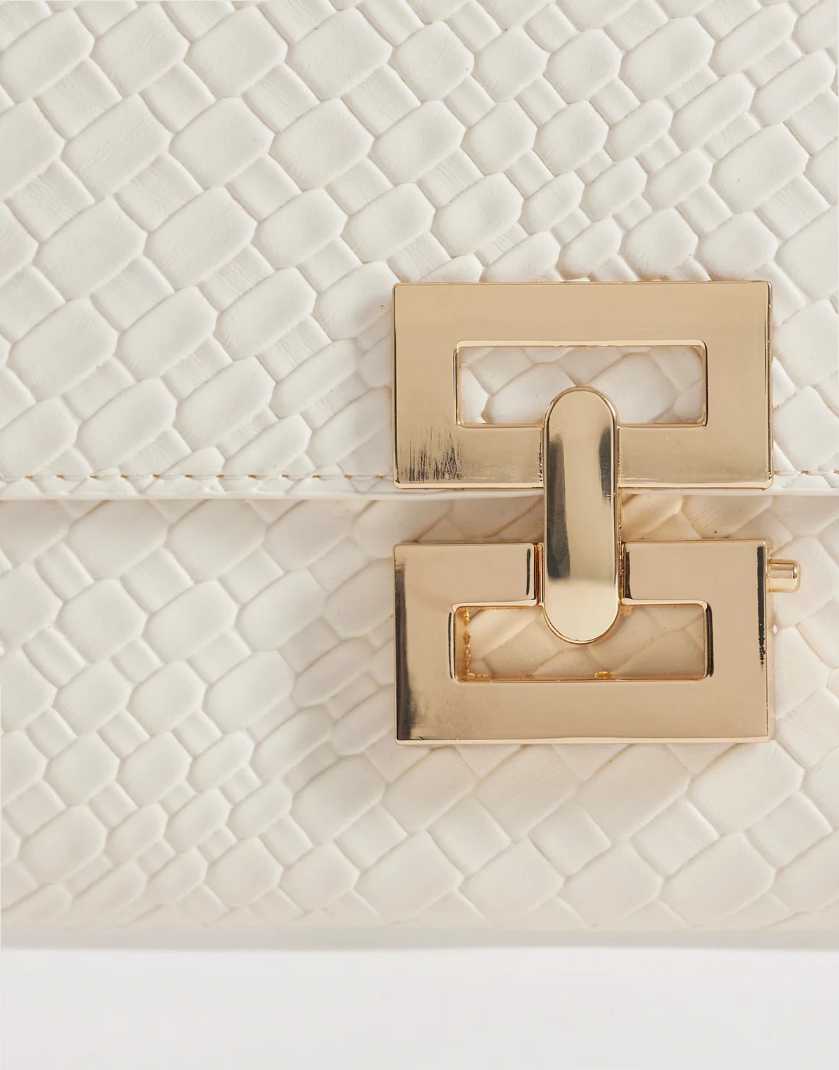 – Clutch in Creme mit Weboptik und Metallschnalle in Gold
