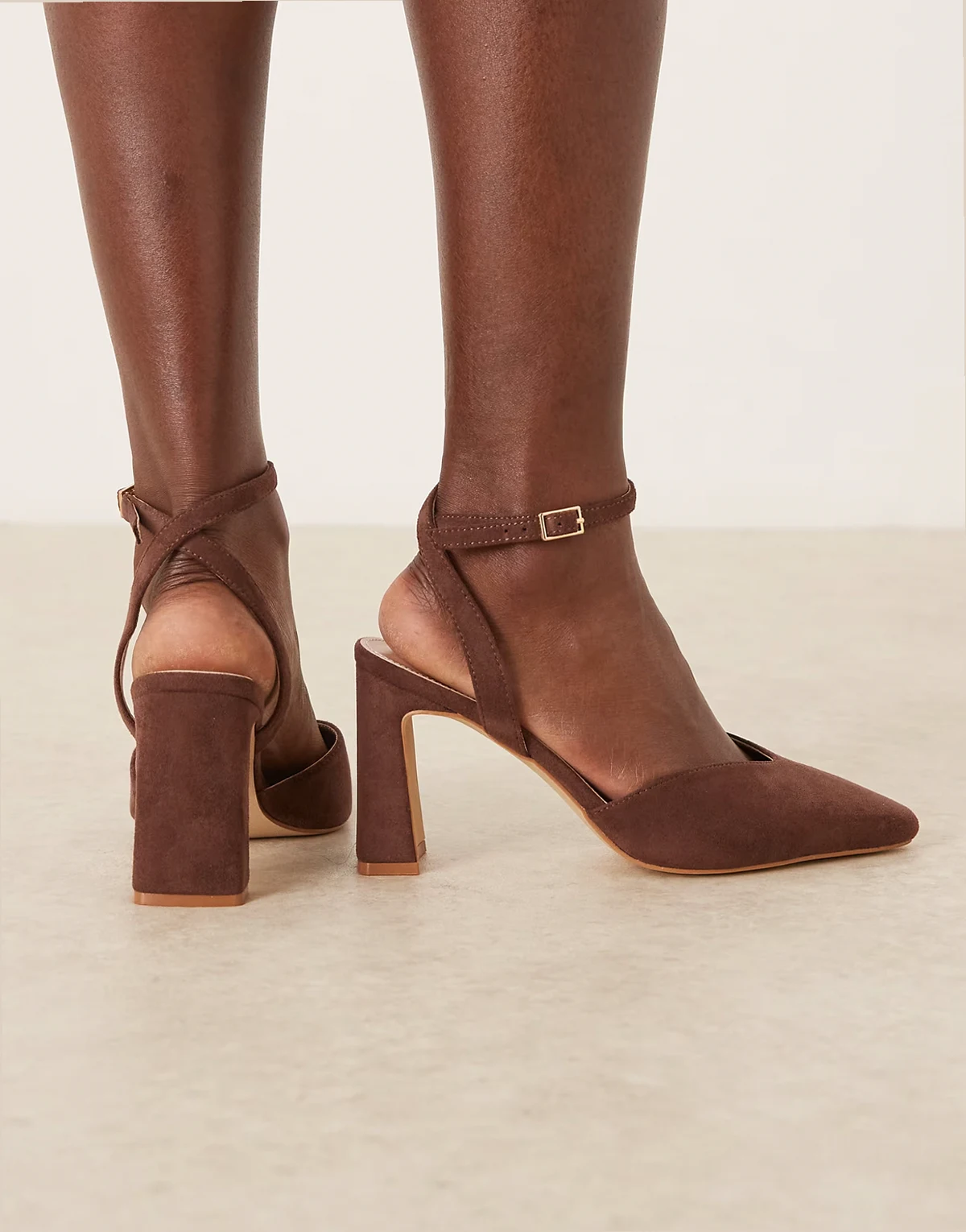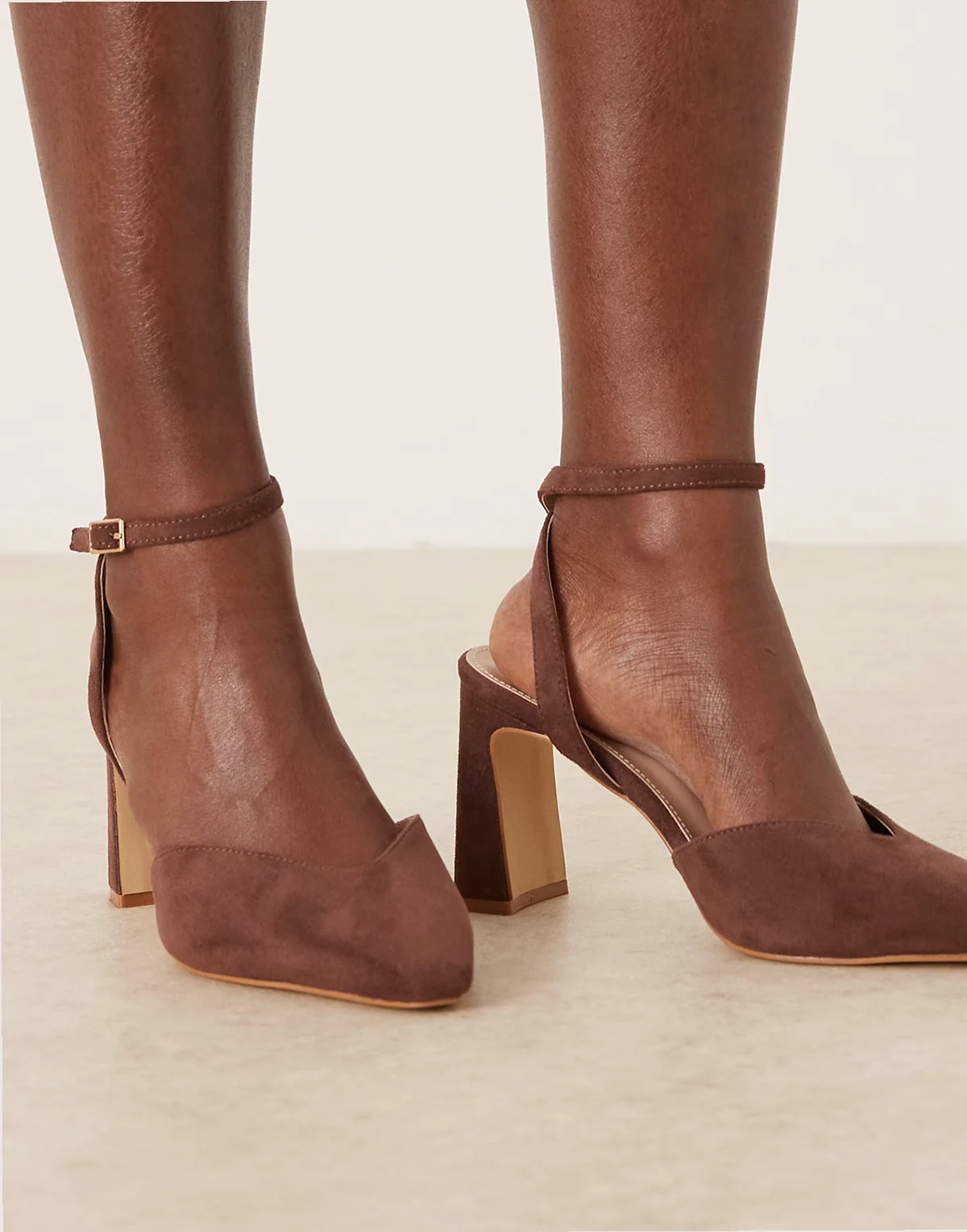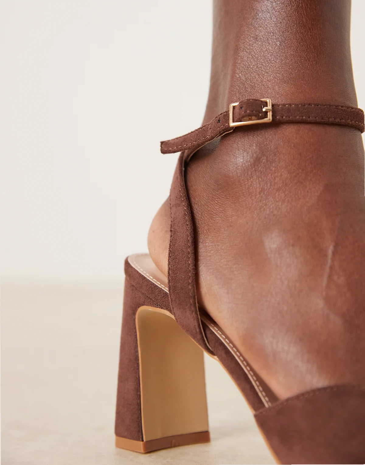 4. – Kristina – Schuhe aus Wildlederimitat in Braun mit Blockabsatz, weite Passform