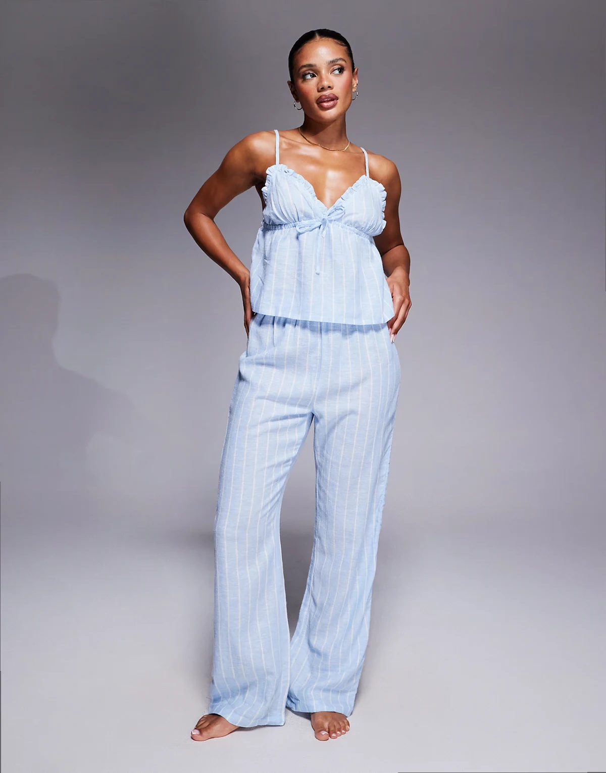Mit Camisole-Oberteil und Hose