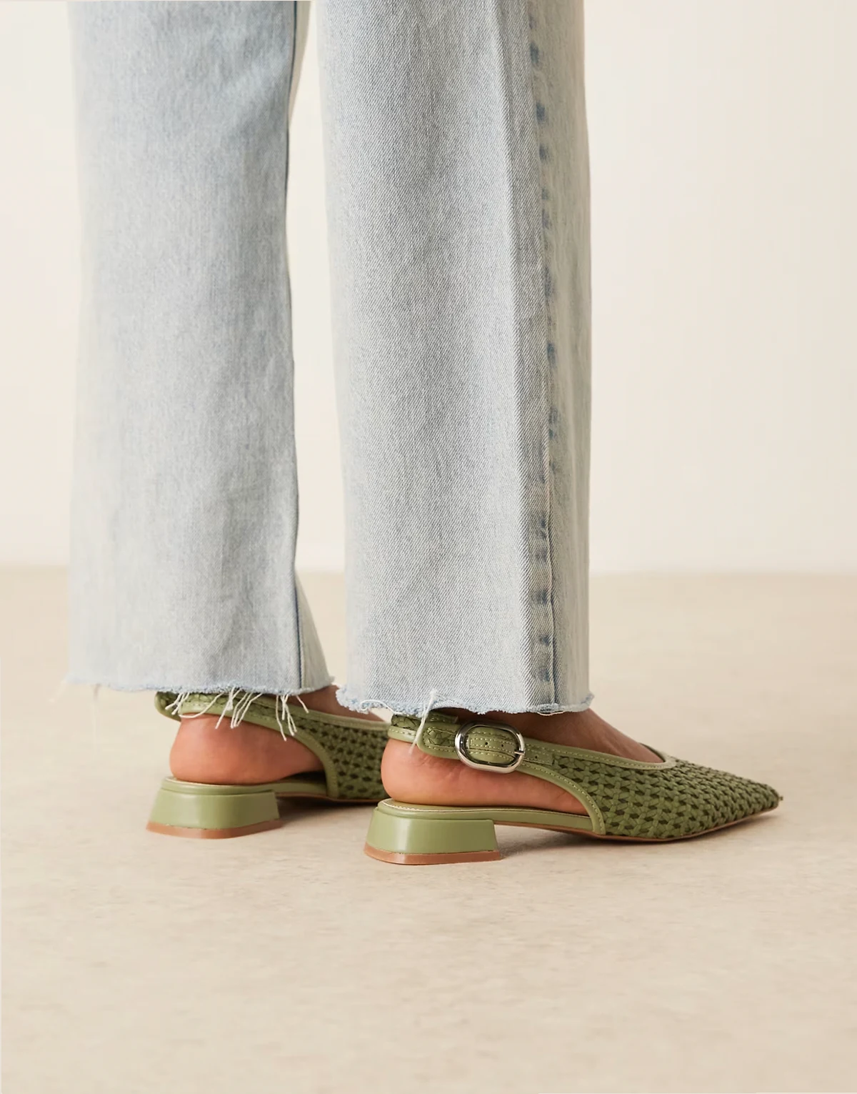 – Leonora – Ballerinas in Salbeigrün mit Webmuster und Fersenriemen