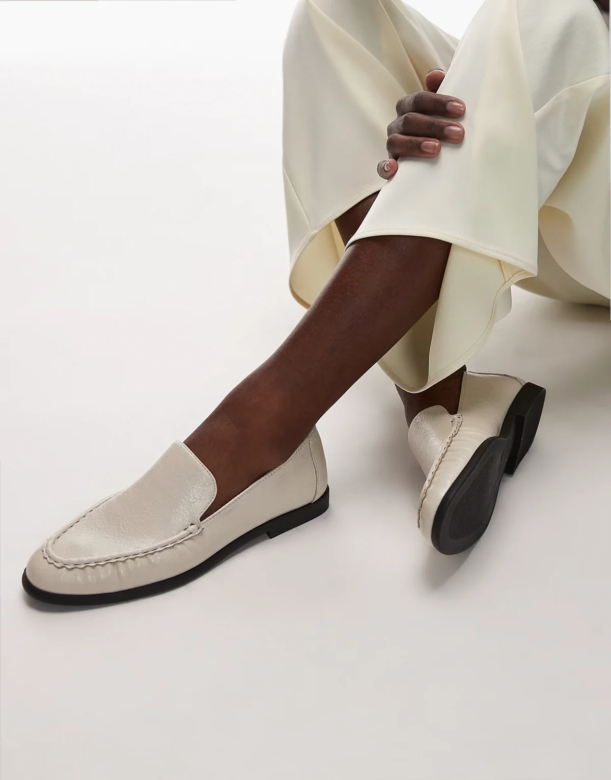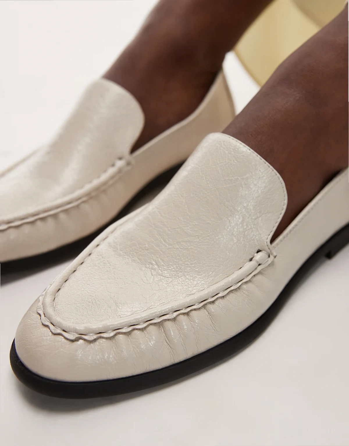 – Connell – Flache Loafer in Wollweiß mit Raffung