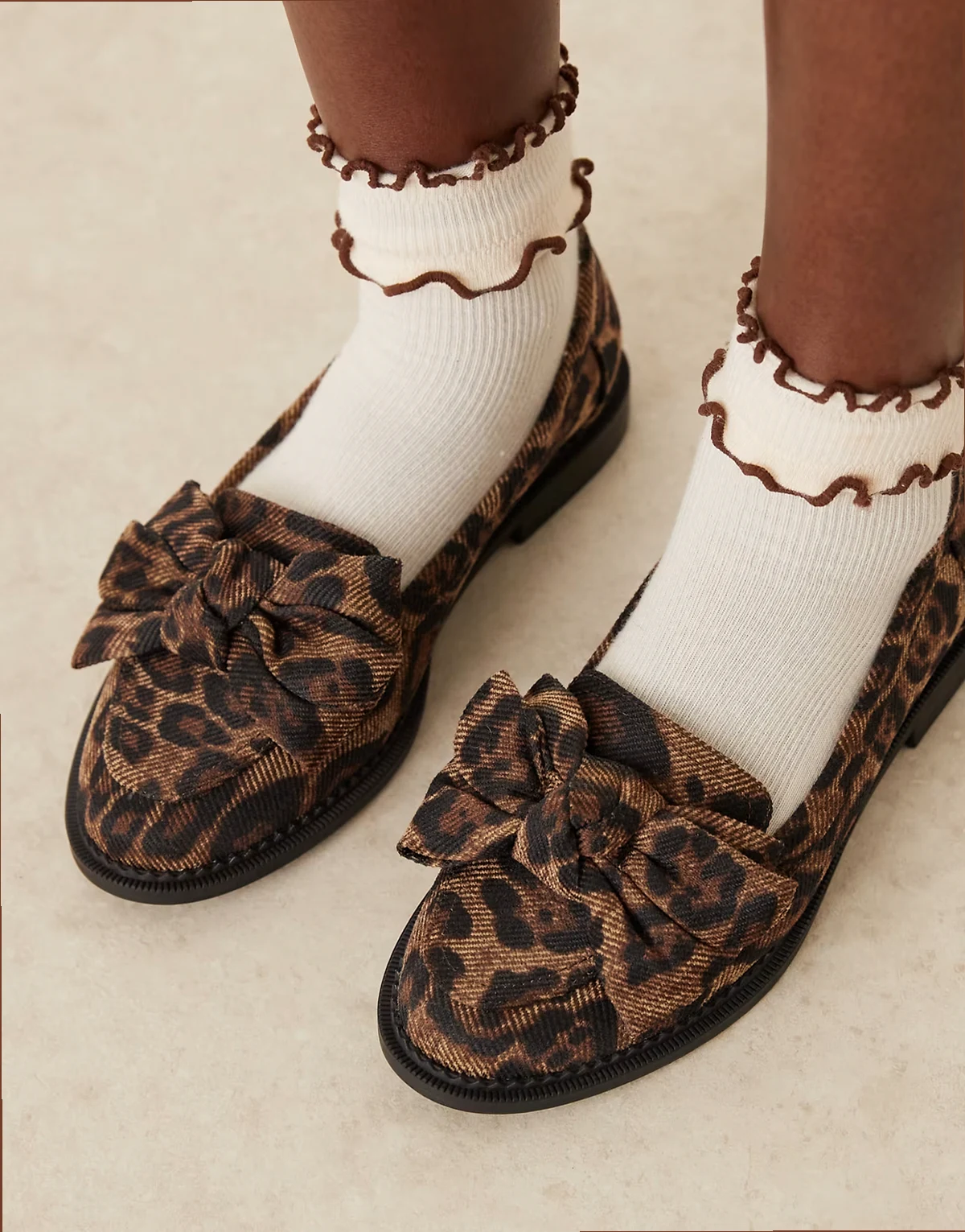 Wide Fit – Memphis – Flache Schuhe mit Schleifendetail und Leopardenmuster, weite Passform
