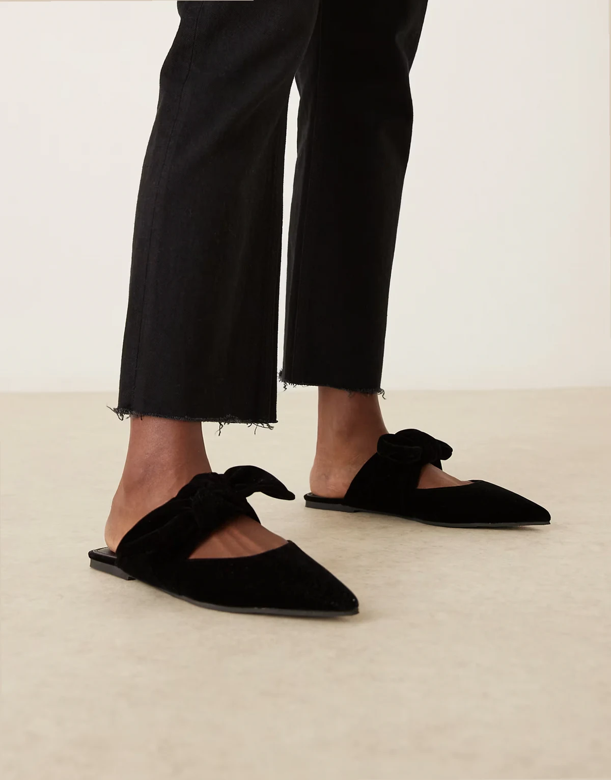 – Lunar – Samt-Mules in Schwarz mit Schleifendetail