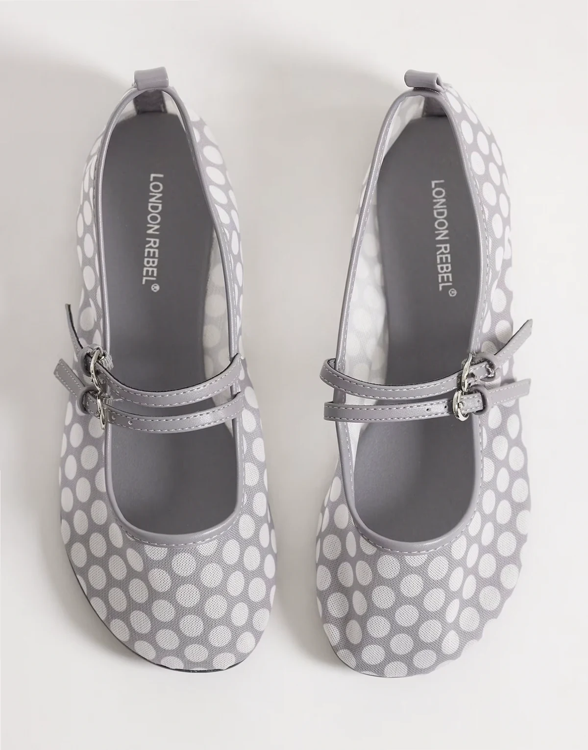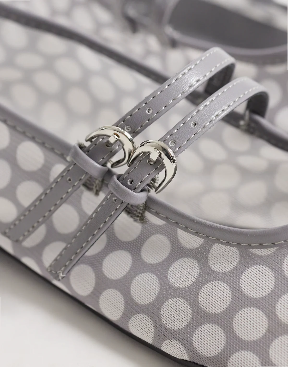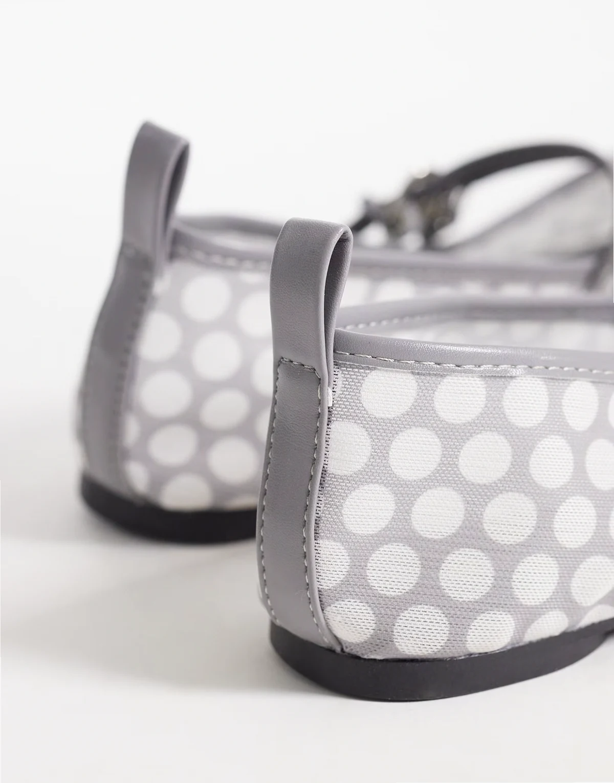 – Mia – Geraffte Riemchen-Ballerinas in Grau mit Polka Dots