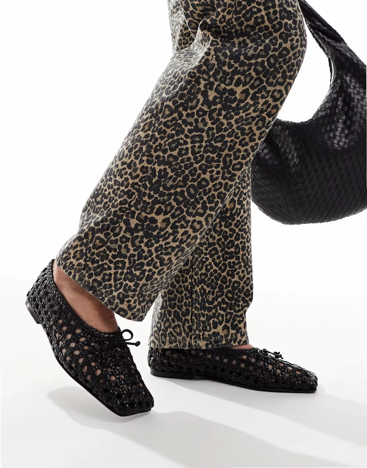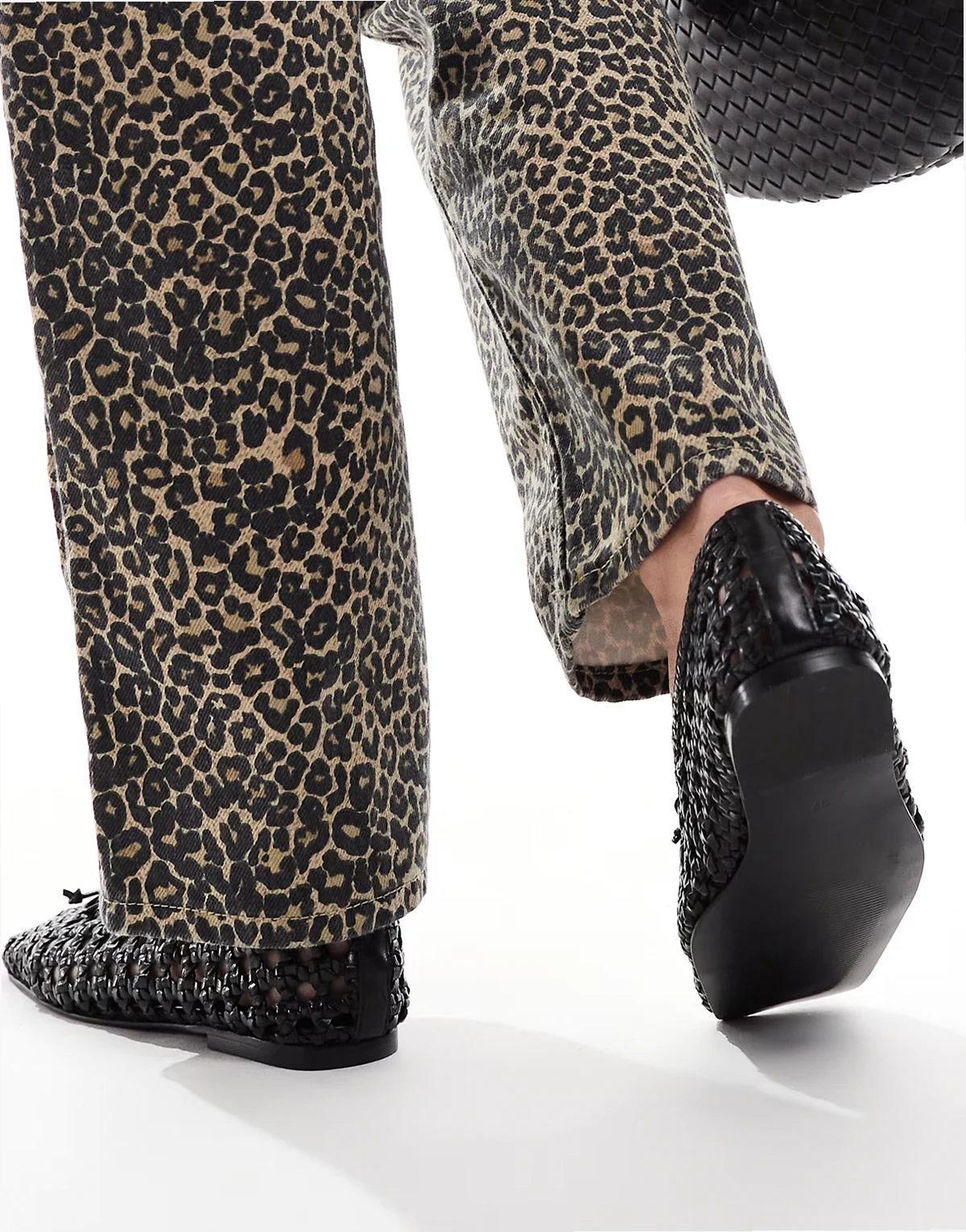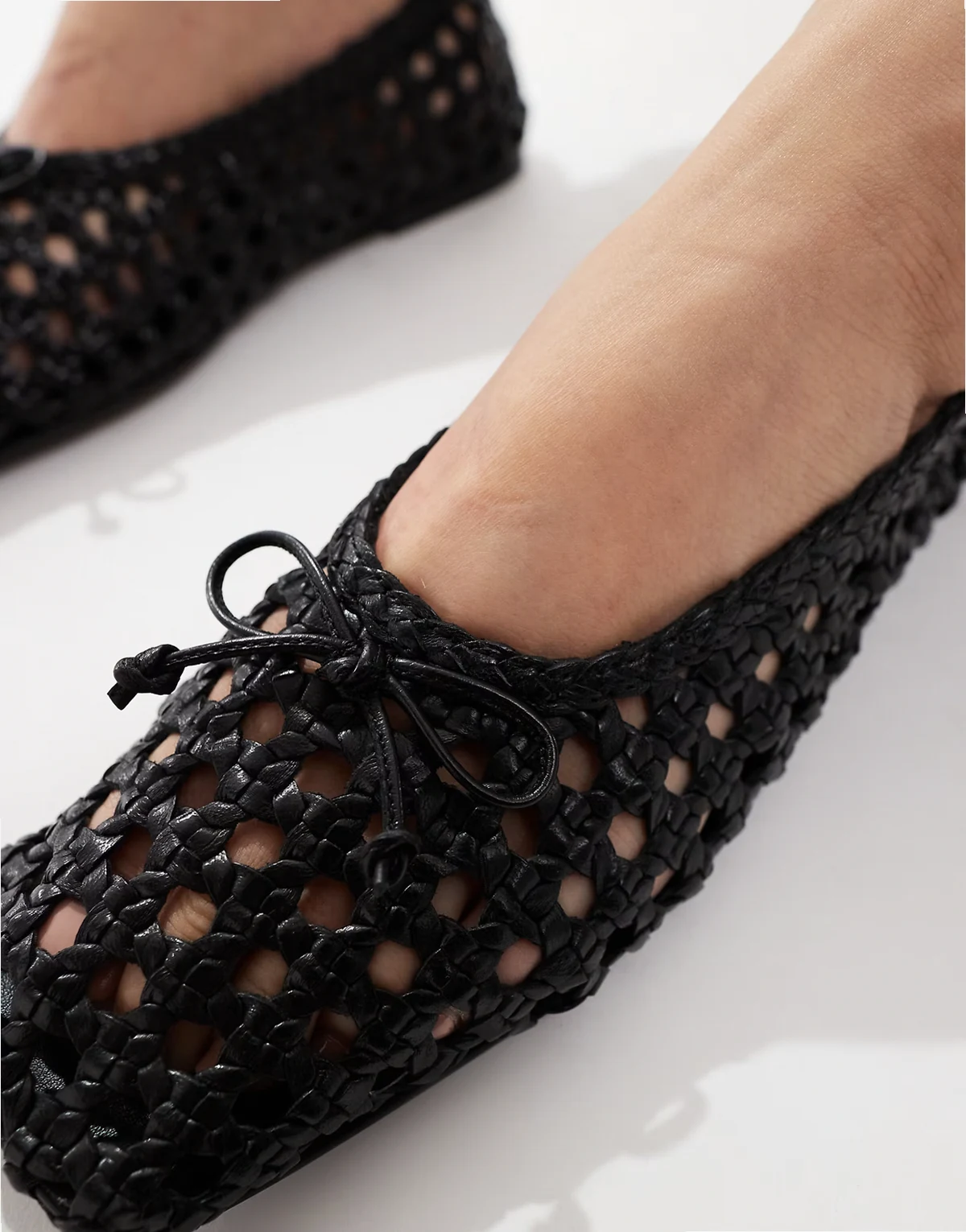 – Lysandra – Leder-Ballerinas in Schwarz mit hohem Schuhblatt und gewebtem Design