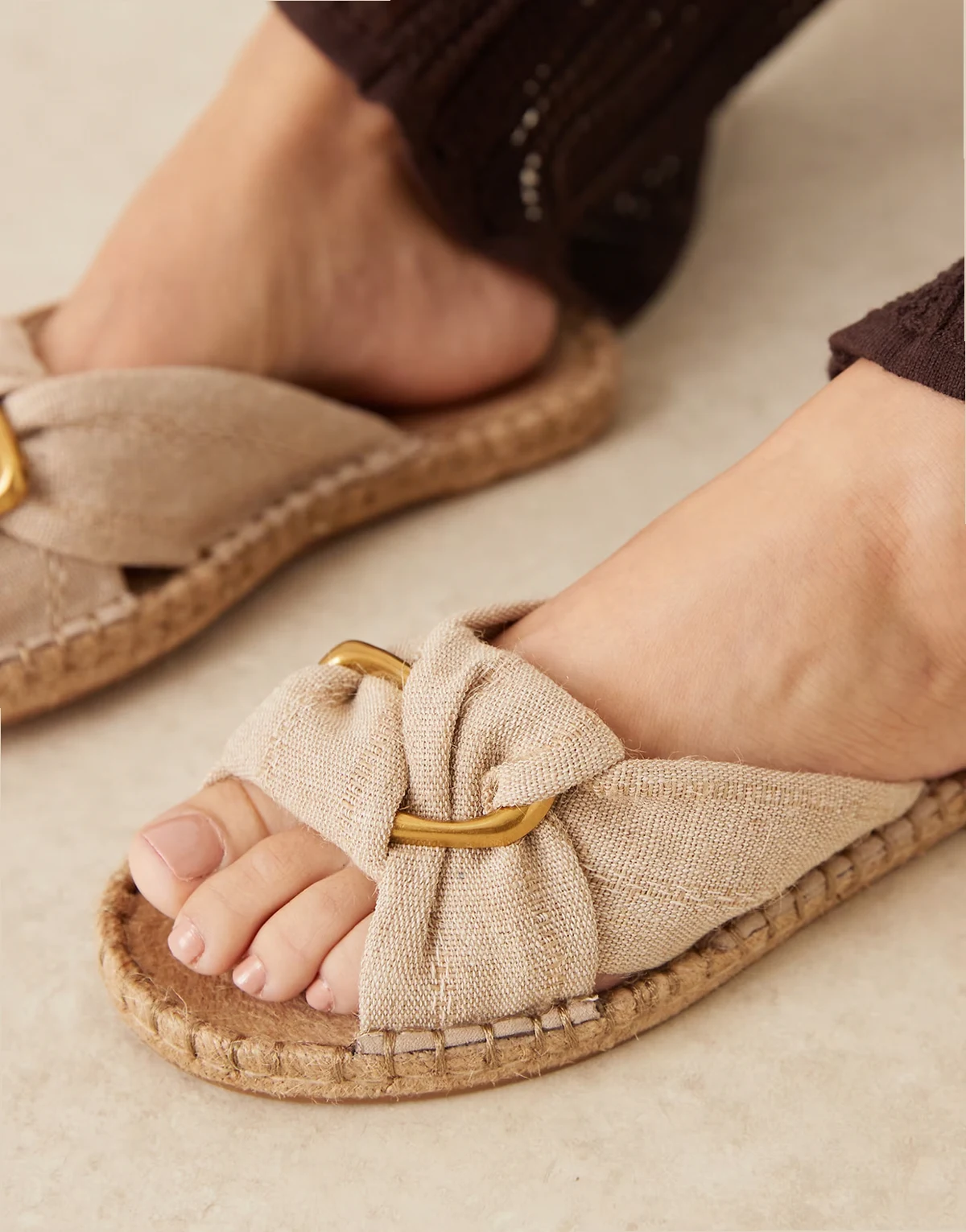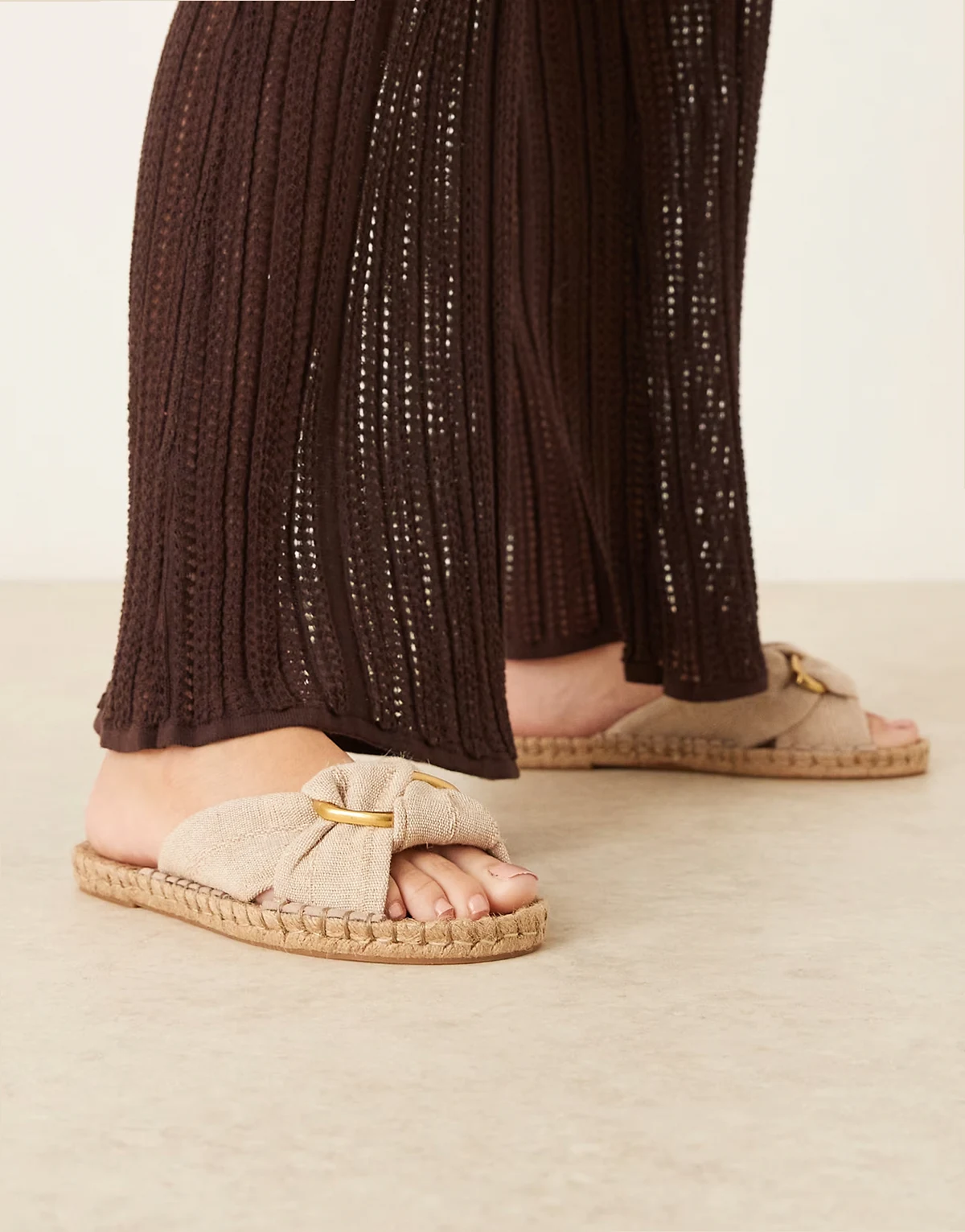 – Jade – Geknotete Espadrille-Pantoletten in Naturfarbe