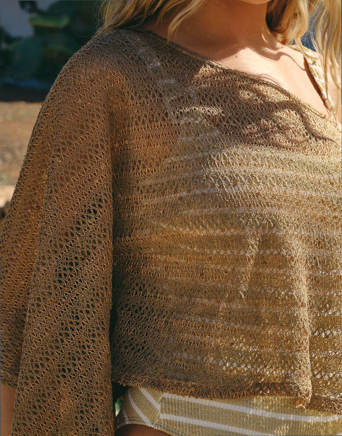 Häkel-Stoff: gestrickter, weitmaschiger, strukturierter Stoff in gemusterter, handgefertigter Optik