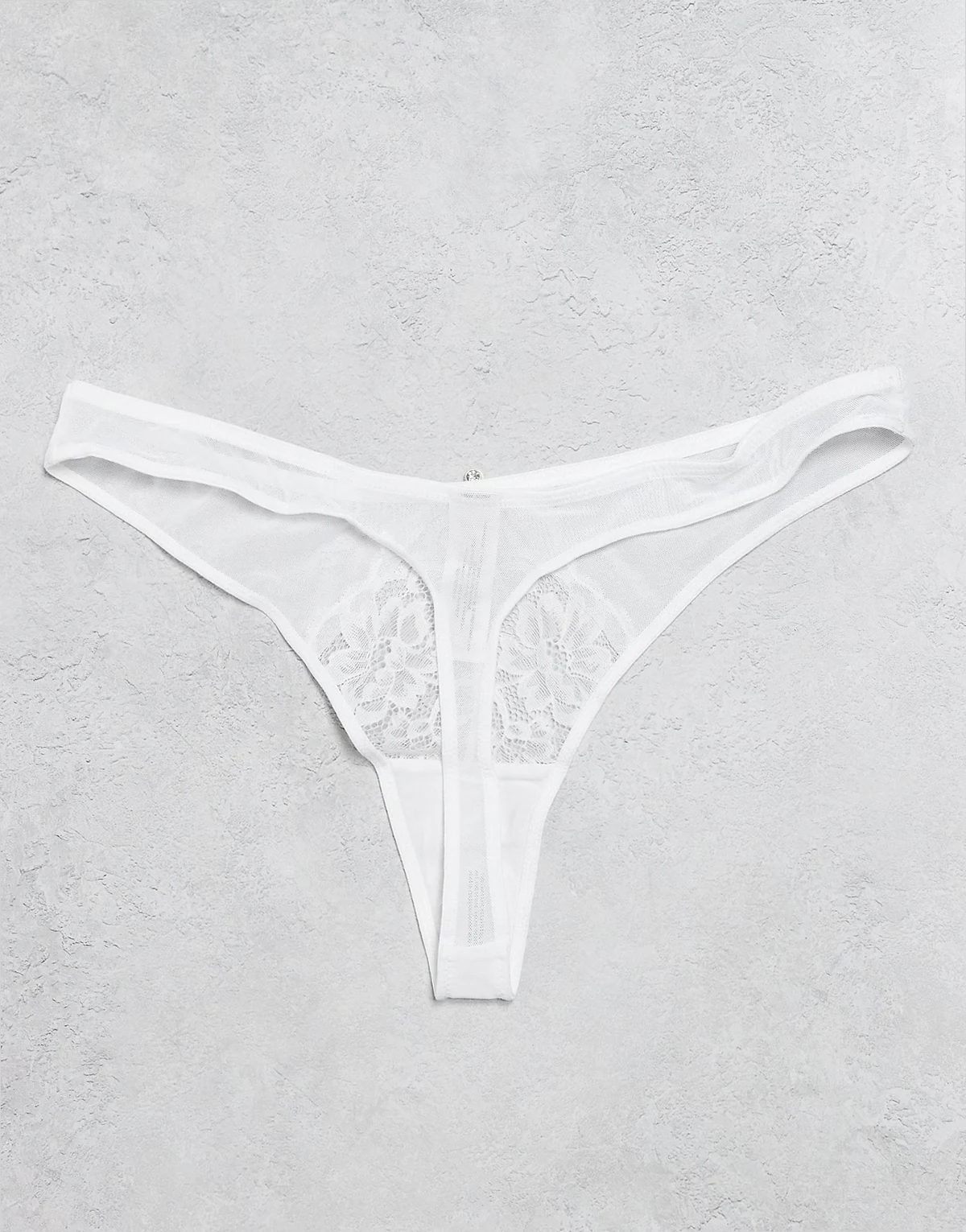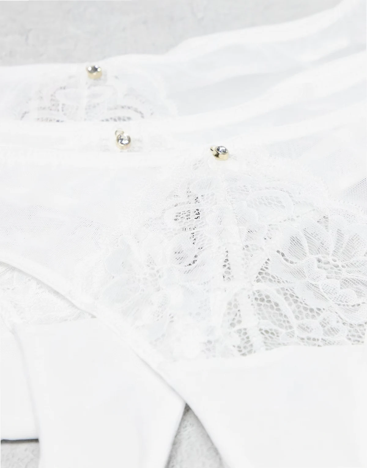 Zwickelfutter: 100% Baumwolle, Spitze: 87% Polyamid, 13% Elasthan, Netzstoff: 93% Polyamid, 7% Elasthan.